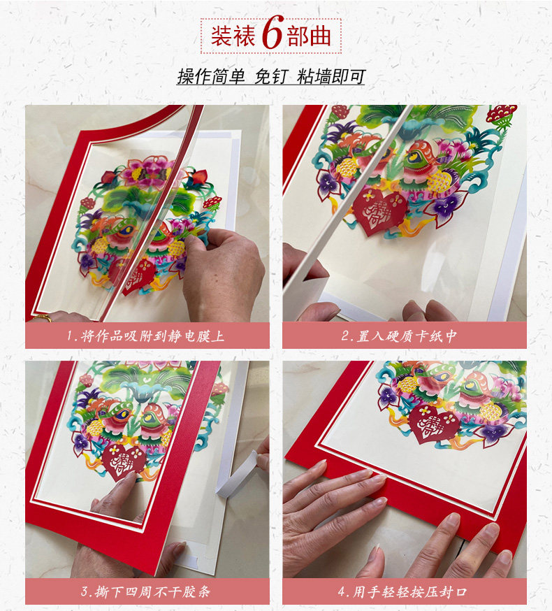 📚 硬卡纸画框剪纸相框装裱创意中式挂墙手绘画画学生教室装饰a3方圆