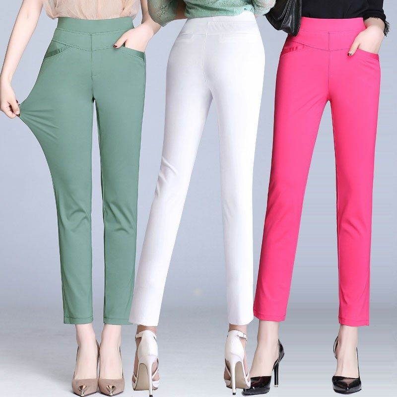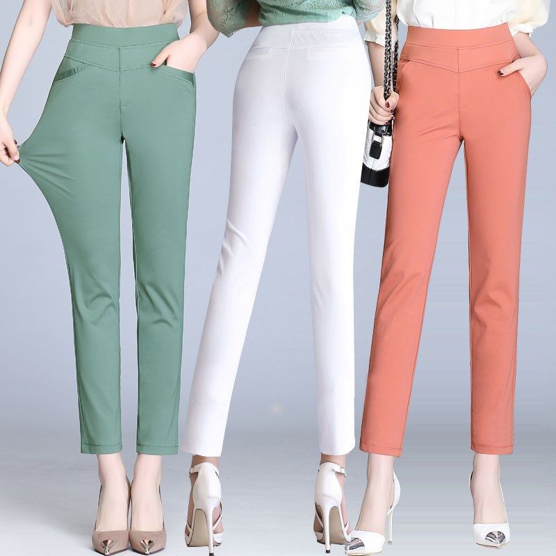📚 冰丝妈妈裤子夏季薄款高腰休闲裤女九分裤显瘦小脚裤垂坠七分女裤