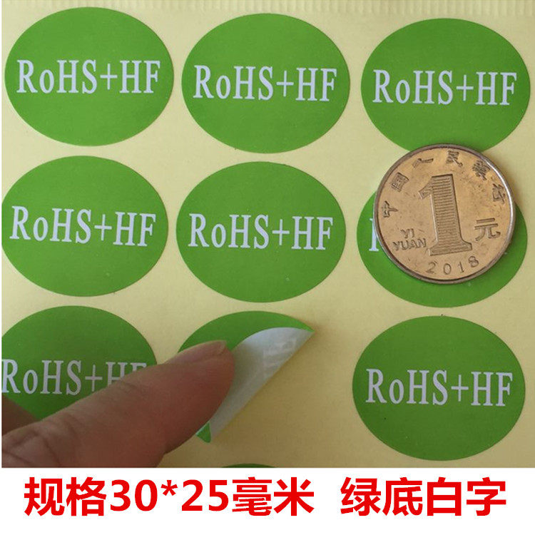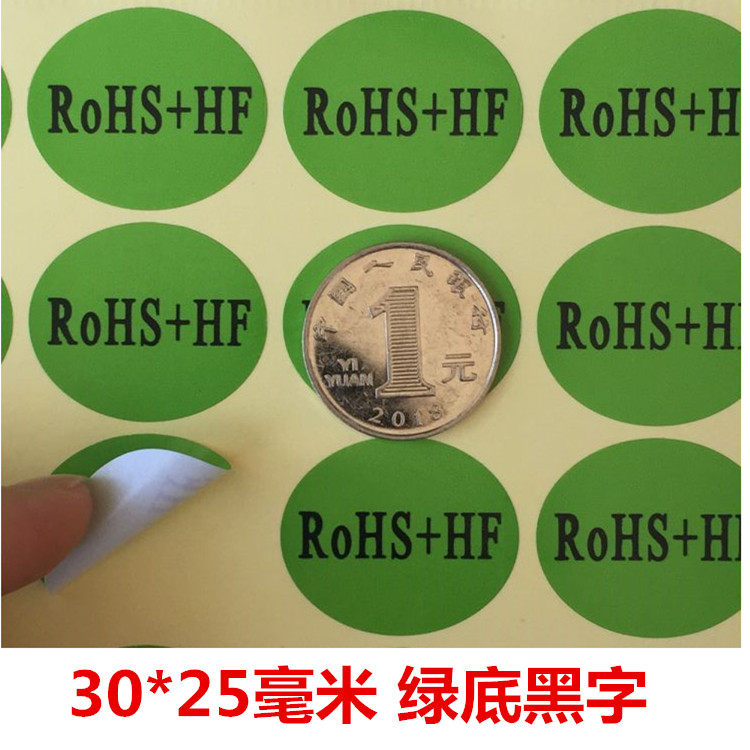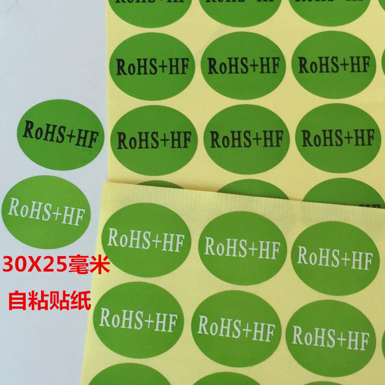 📚 绿色ROHS+HF标签环保HF无卤标签自粘不干胶无铅及时贴包装封签