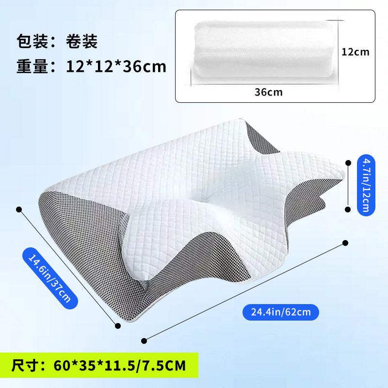 📚 外贸记忆枕回弹记忆棉枕芯蝶形枕头透气护颈牛角枕睡眠颈椎枕