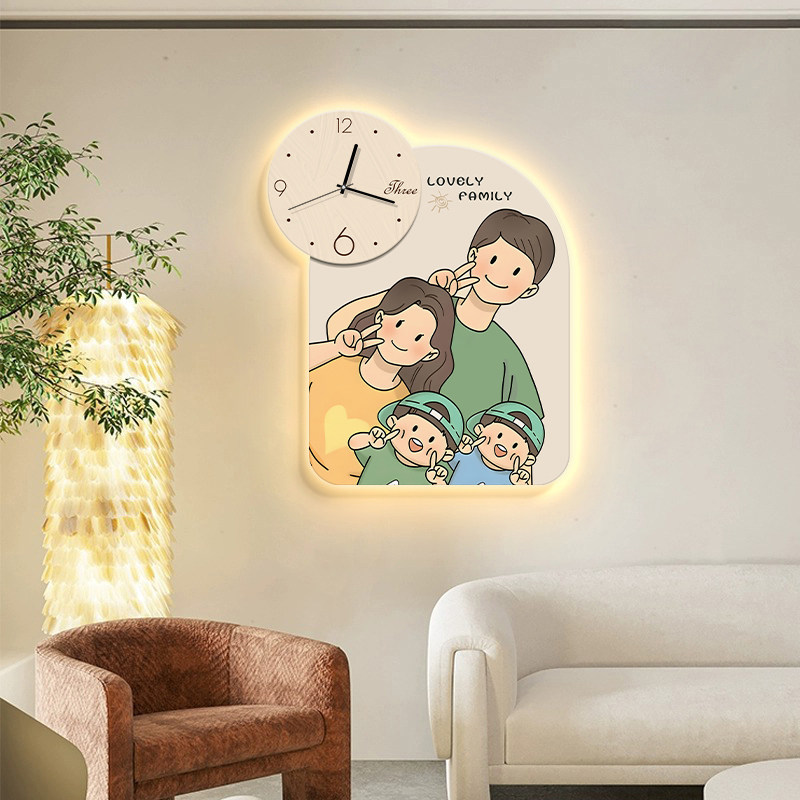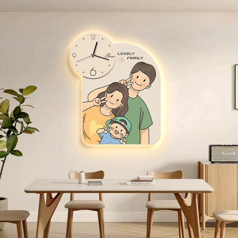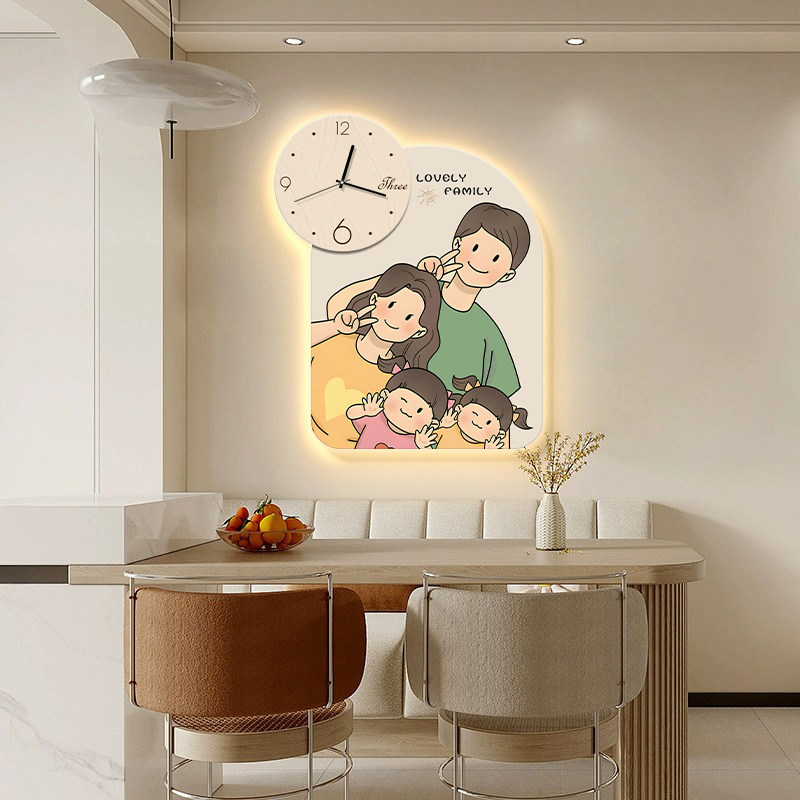 📚 一家三四口时钟表挂钟客厅家用挂画网红餐厅装饰画创意挂墙壁画灯
