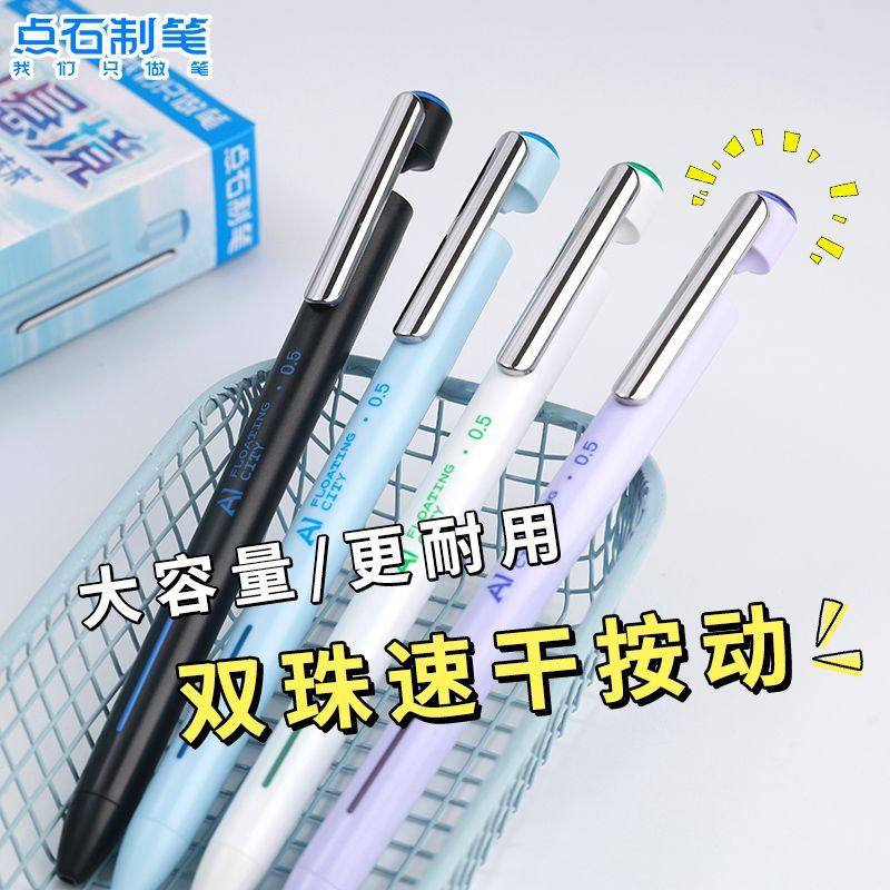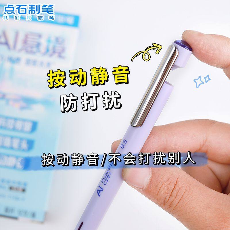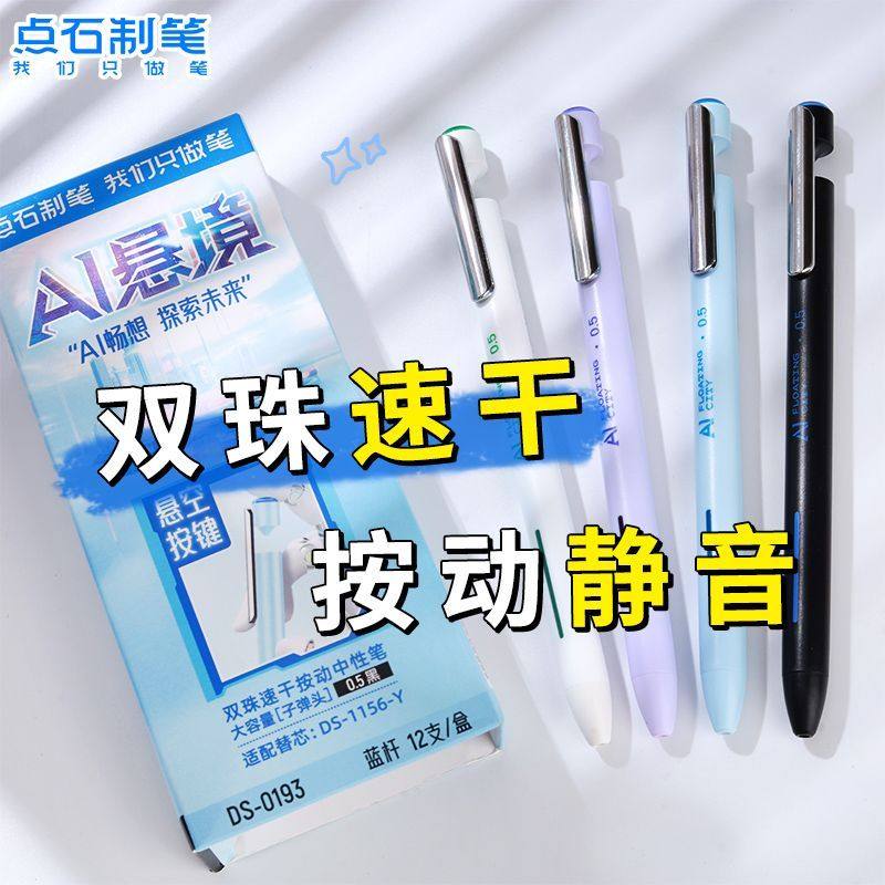 📚 点石AI悬镜按动静音中性笔0.5黑色双珠顺滑速干学生刷题笔练字笔