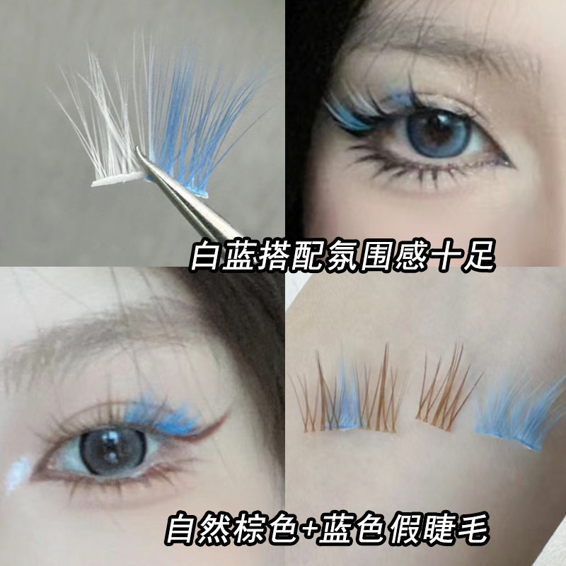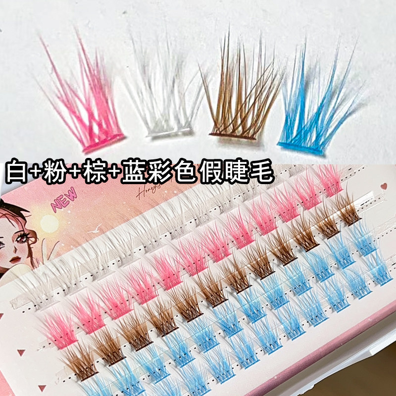 📚 COS妆彩色假睫毛白色粉色蓝色黄色分段式眼睫毛眼妆宝石之国妆容