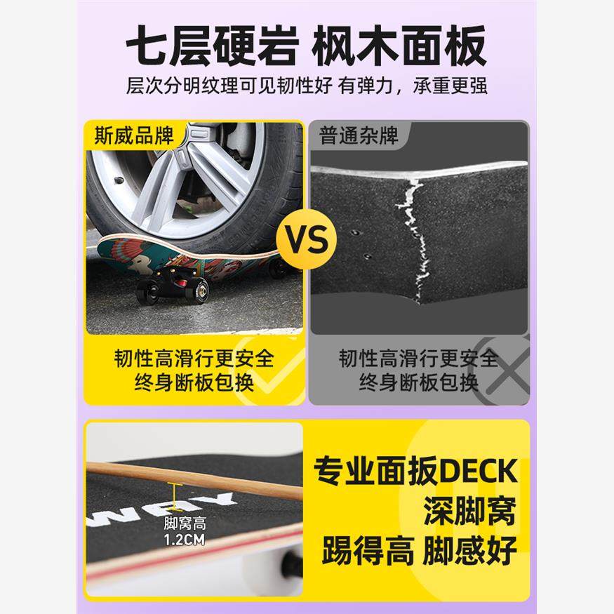 📚 斯威专业滑板初学者成人女生儿童款专用青少年3双翘滑板车6到12岁