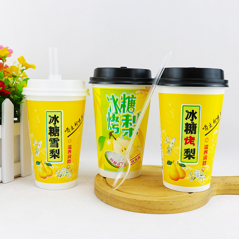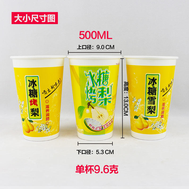 📚 加厚冰糖烤梨纸杯摆摊500/700ML一次性冰糖雪梨奶茶红绿色甜品杯