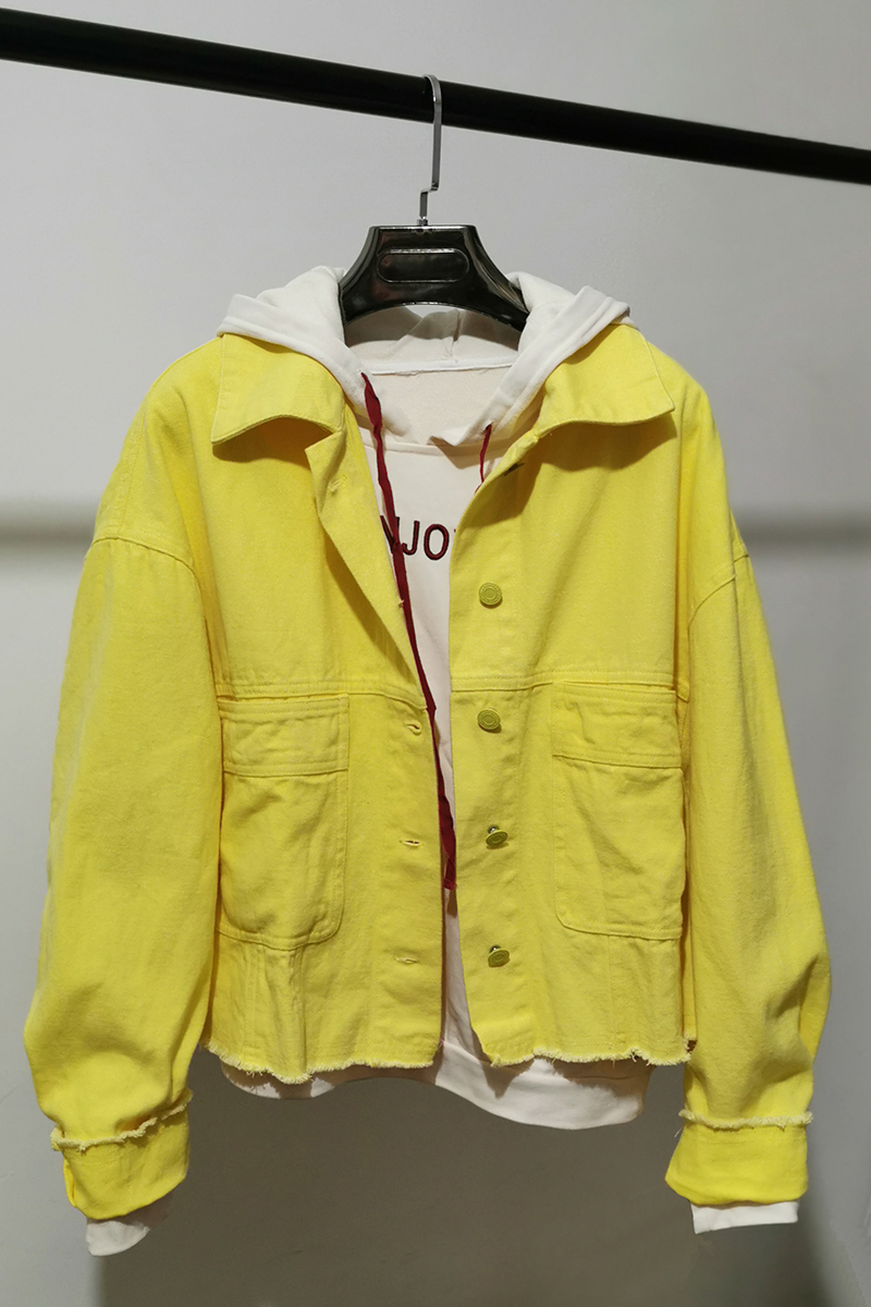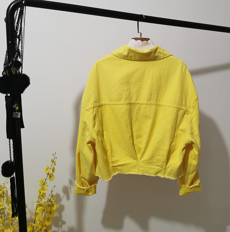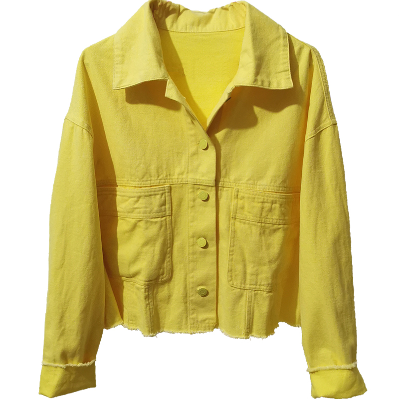📚 春季新款大码女装宽松休闲外套短款牛仔上衣潇洒洋气黄色短夹克潮