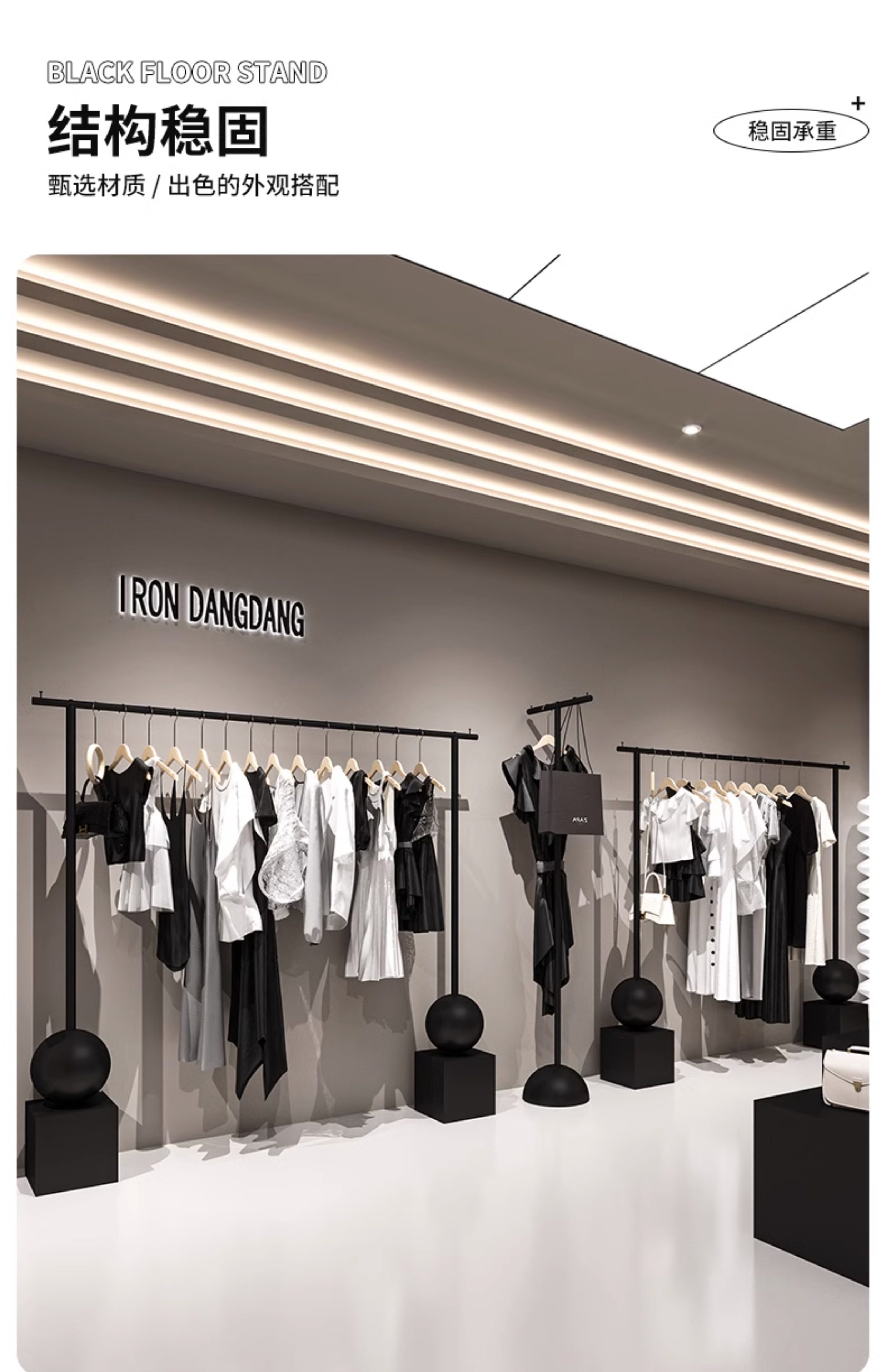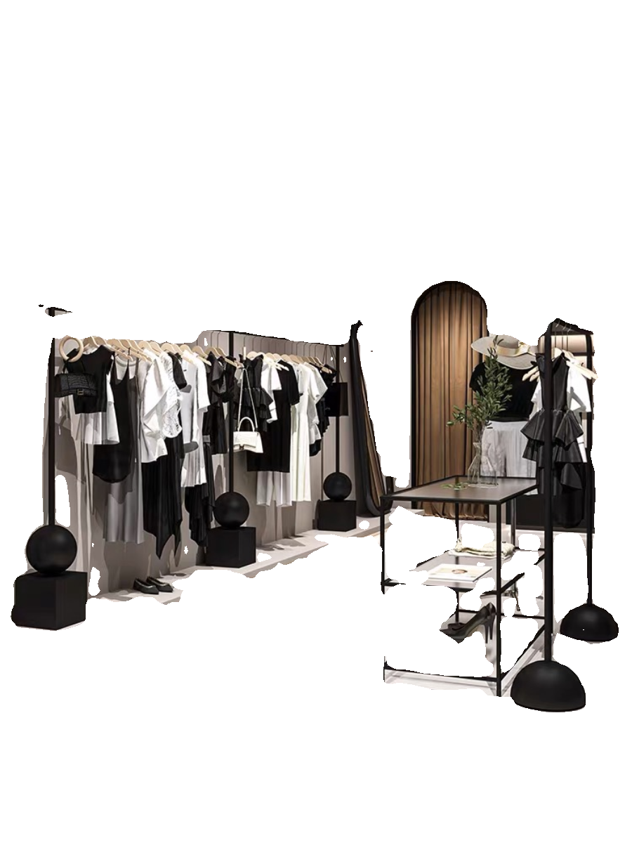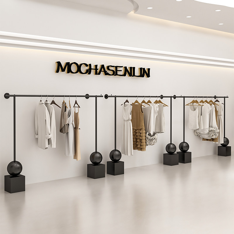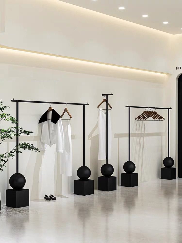 📚 简约女装店落地式展示架铁艺黑色货架服装店挂衣架店铺衣服陈列架