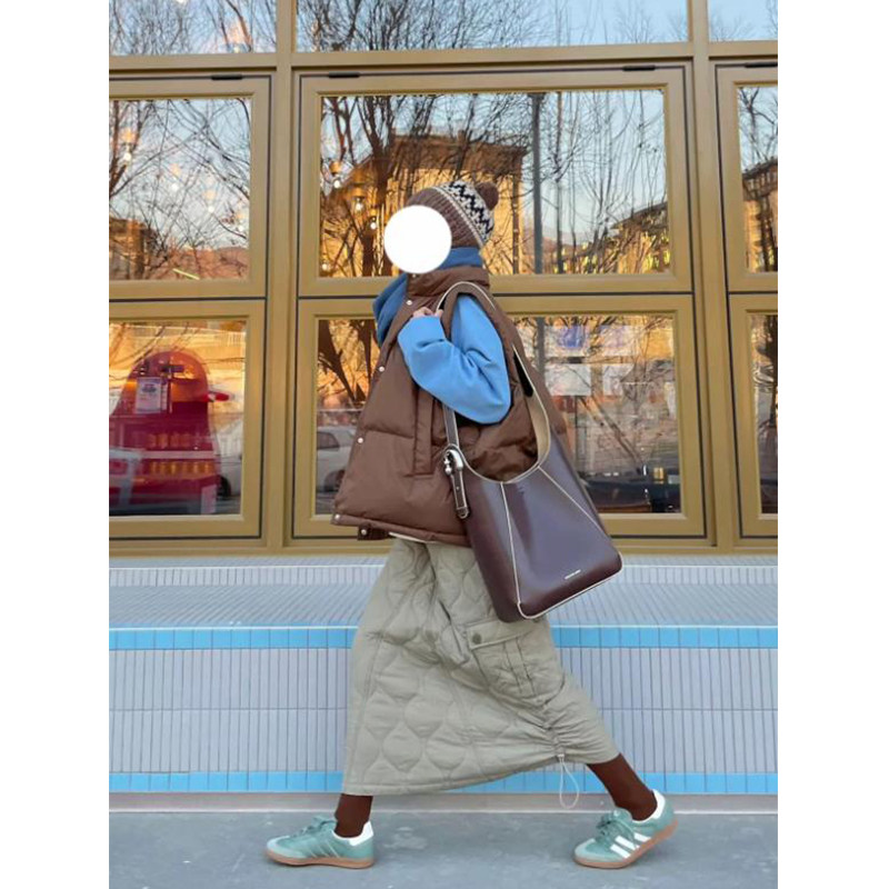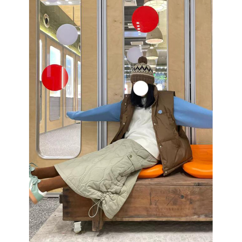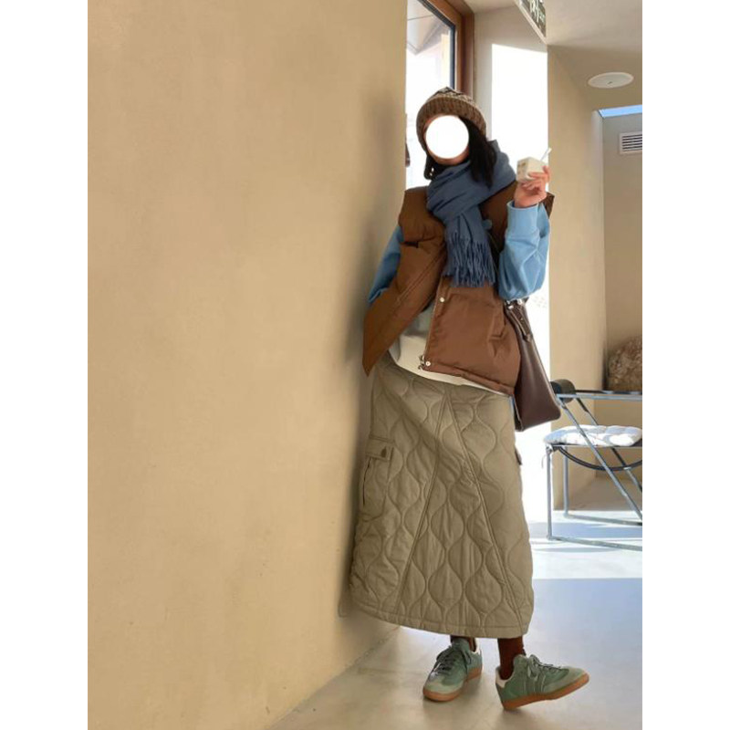 📚 美式复古军绿色抽绳工装裙高腰下摆收口纯色显瘦保暖A字半身裙女