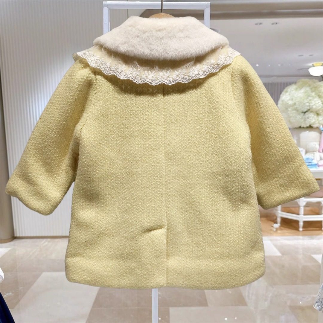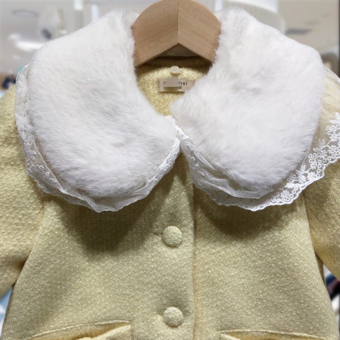 📚 韩国童装25冬新款女童宝宝毛领毛呢巨显白黄色大衣 时尚保暖外套