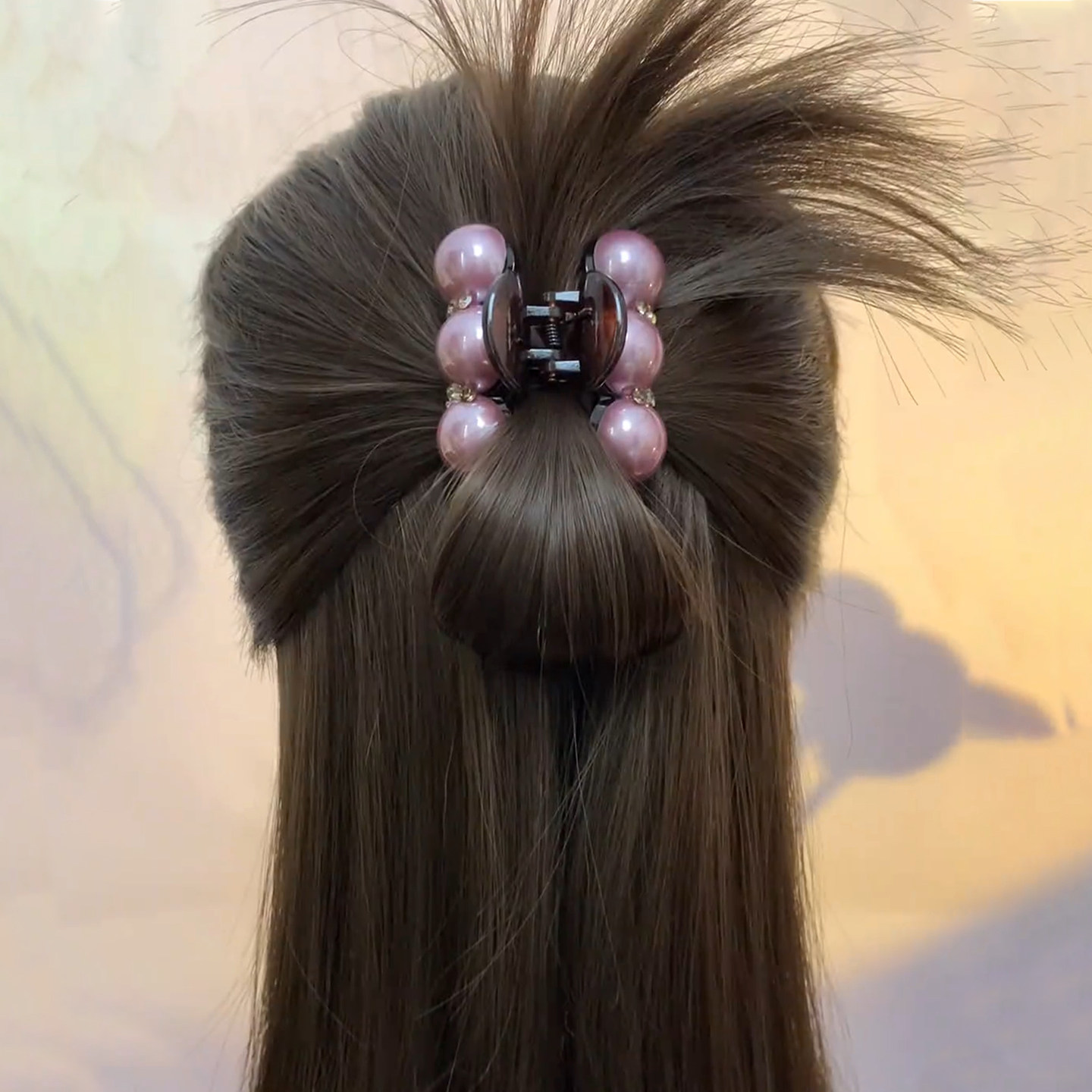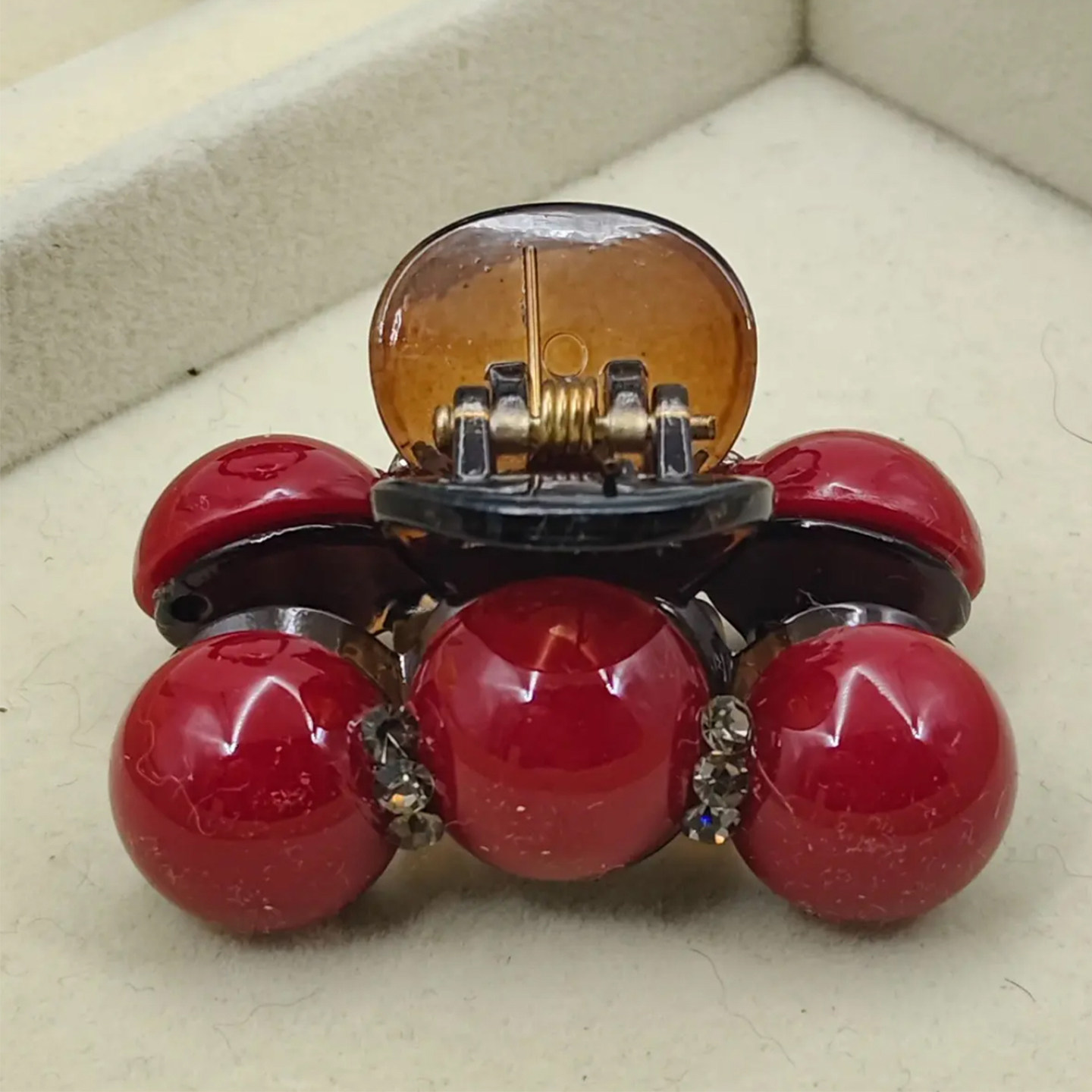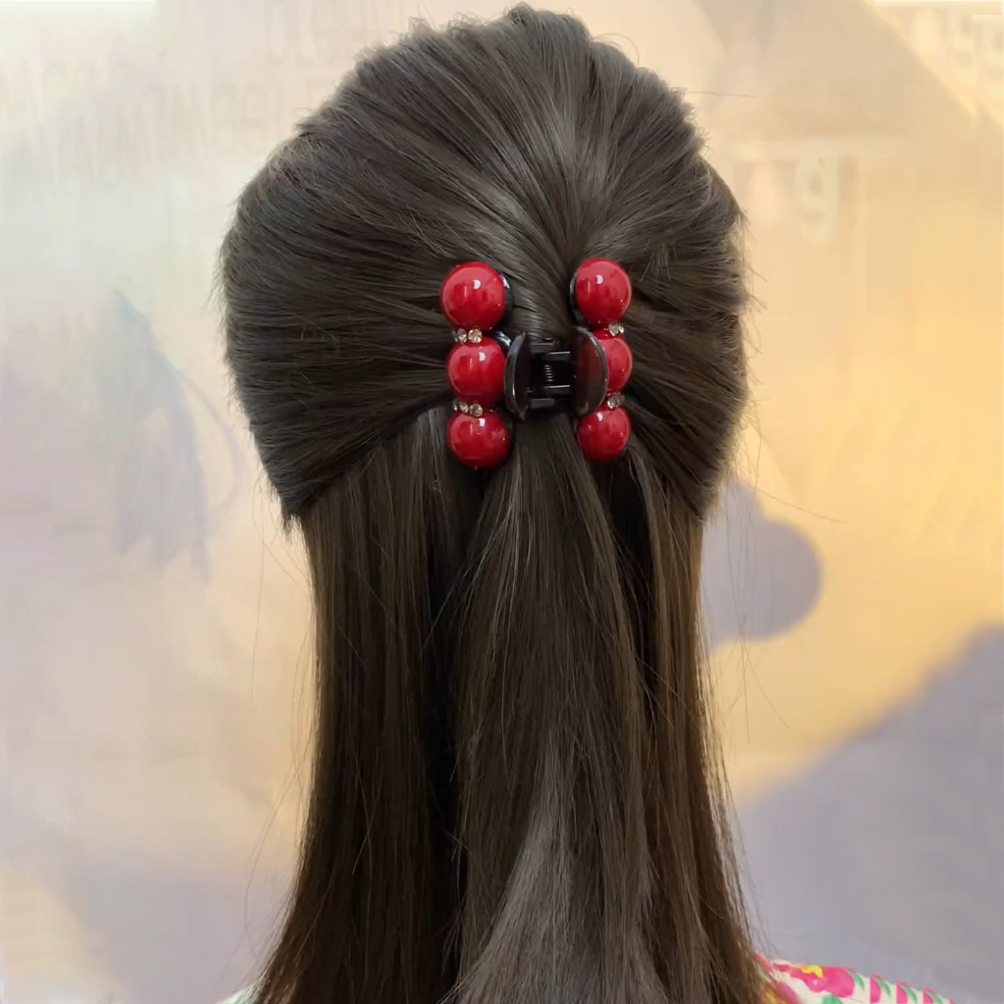 📚 秋冬红色半扎发珠珠小抓夹头饰女高级感2025新款后脑勺鲨鱼发夹子
