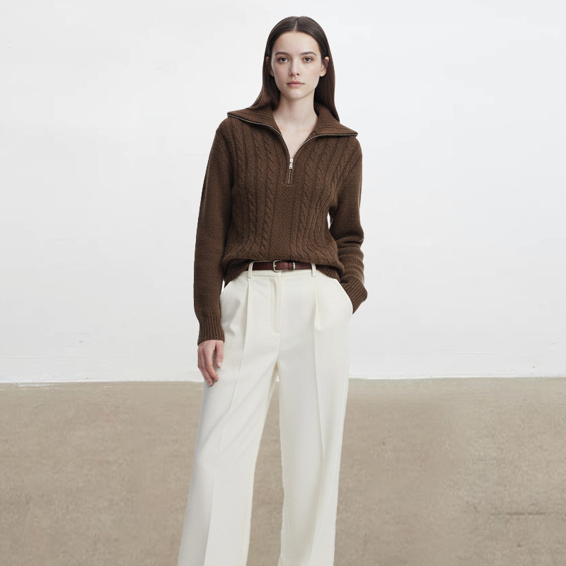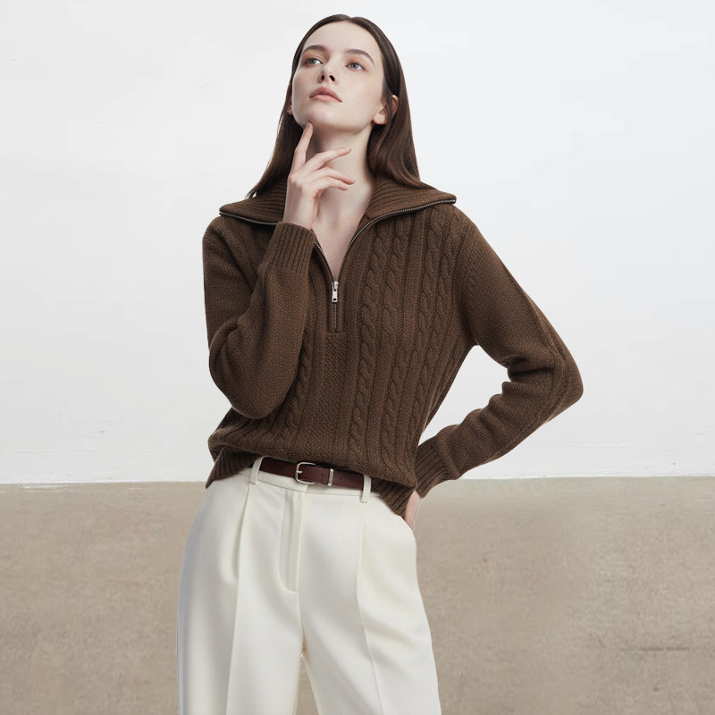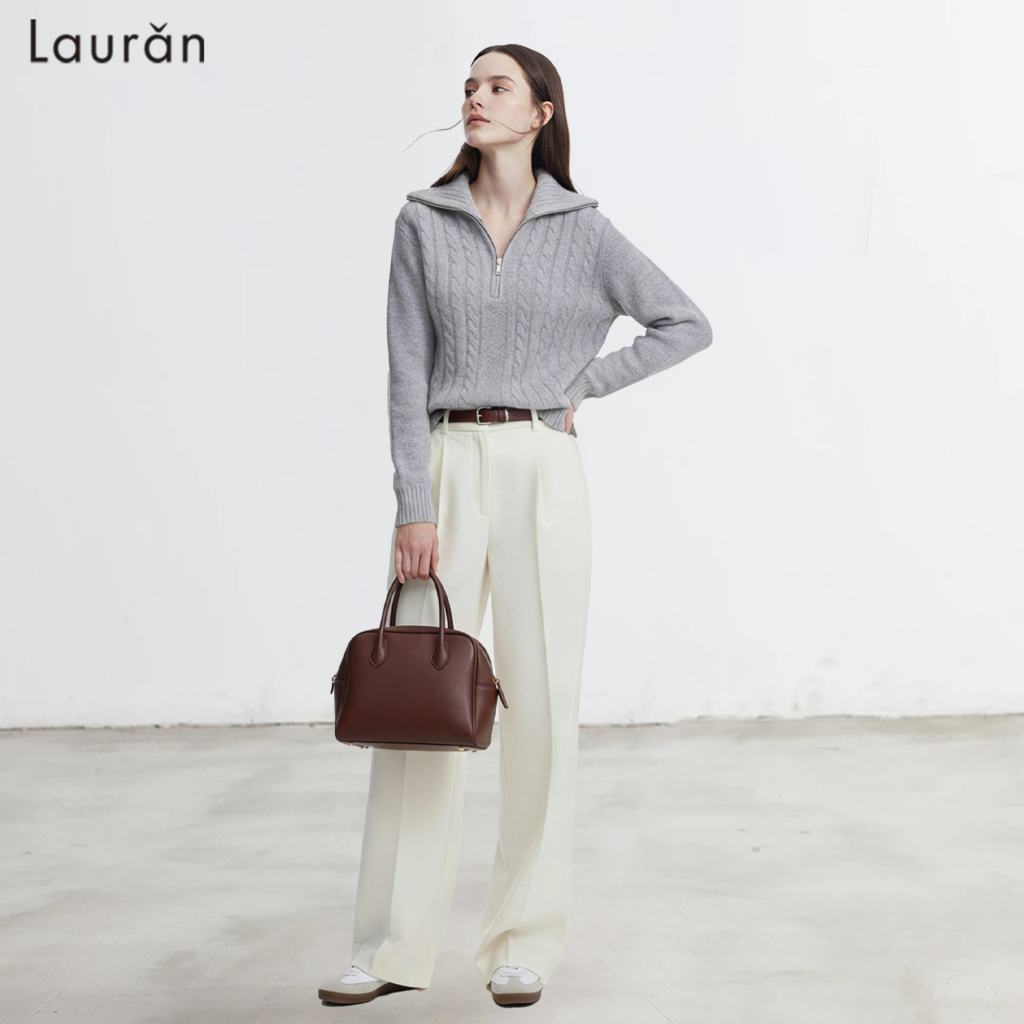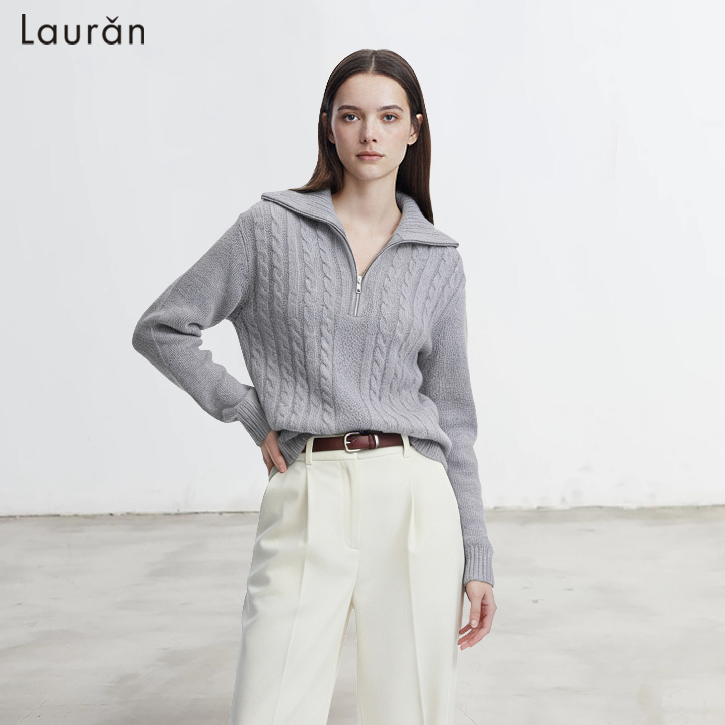 📚 Lauran*慵懒风半拉链灰色毛衣女2026春秋宽松打底外穿针织衫上衣