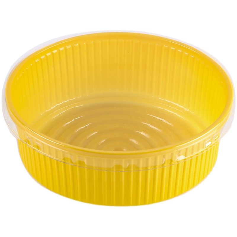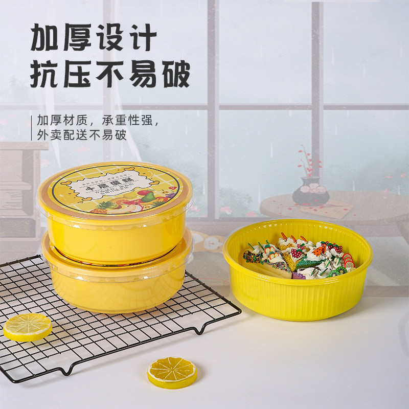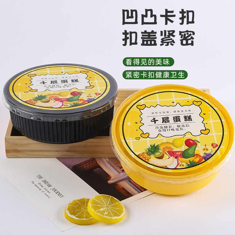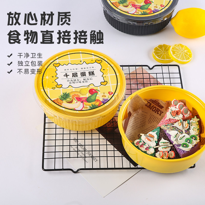 📚 六寸榴莲千层蛋糕盒烘焙甜品芝士乳酪保鲜塑料圆形黄色加厚打包碗