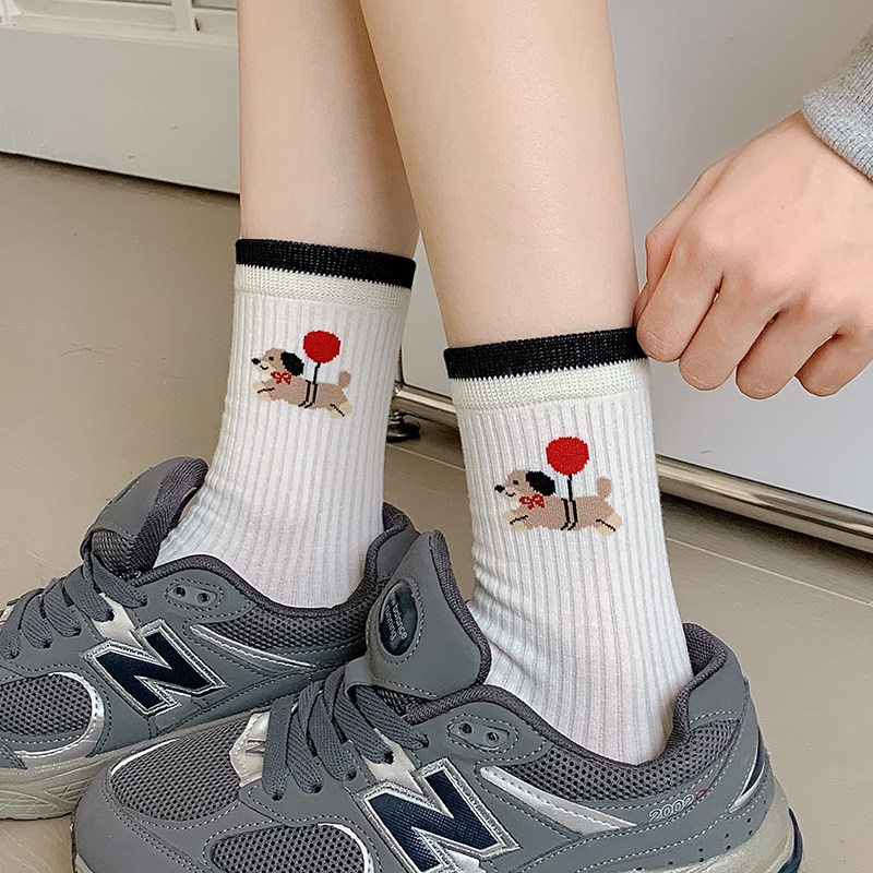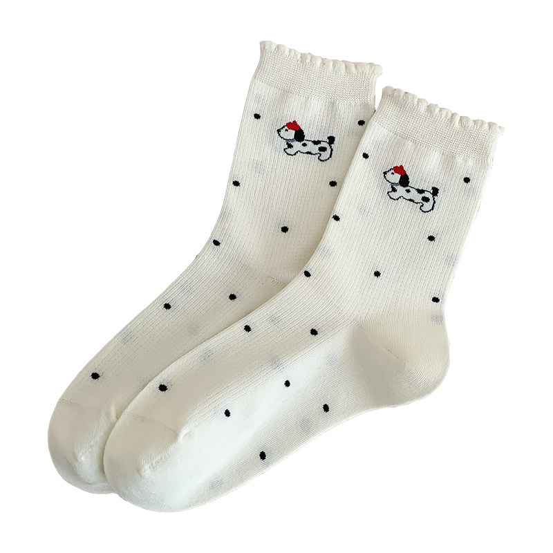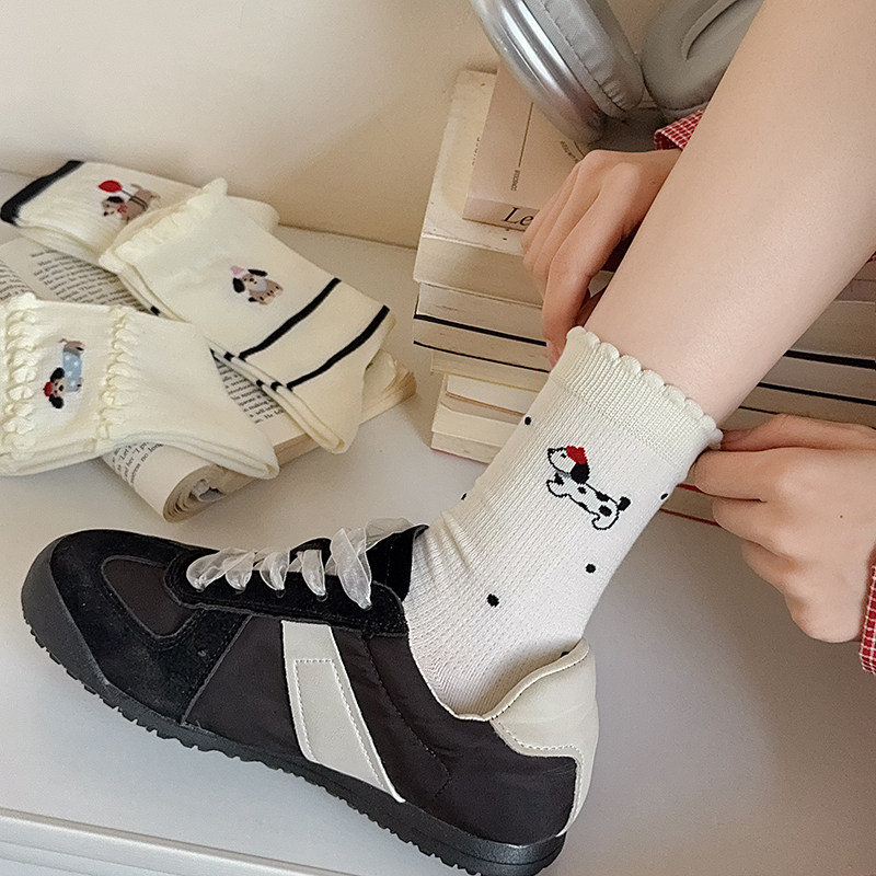 📚 2025年爆款卡通腊肠狗白色可爱中筒女袜袜子女狗狗薄款长袜