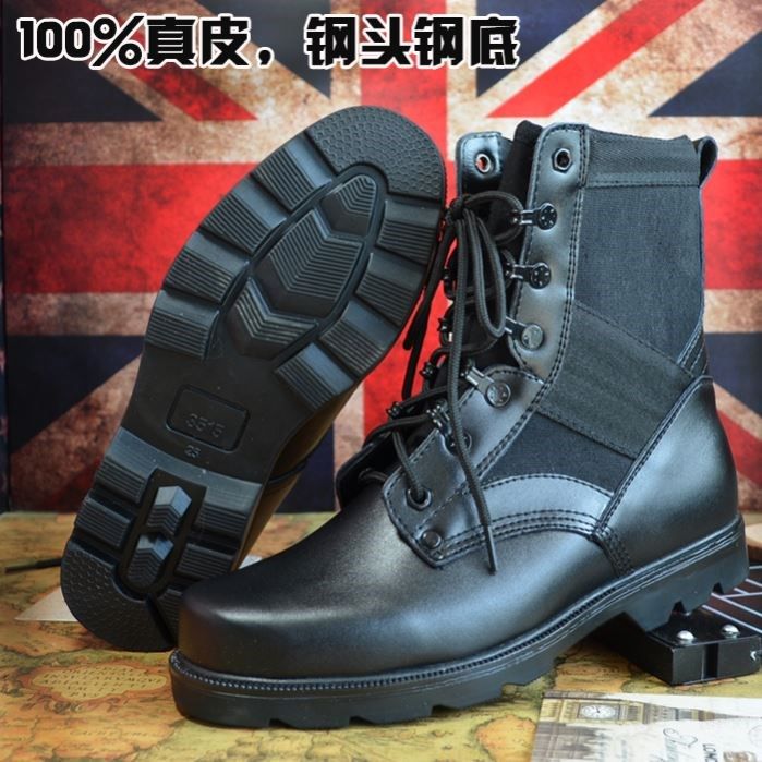 📚 正品牛皮军迷靴作战靴特种梹男钢头钢底真皮军迷鞋大码靴