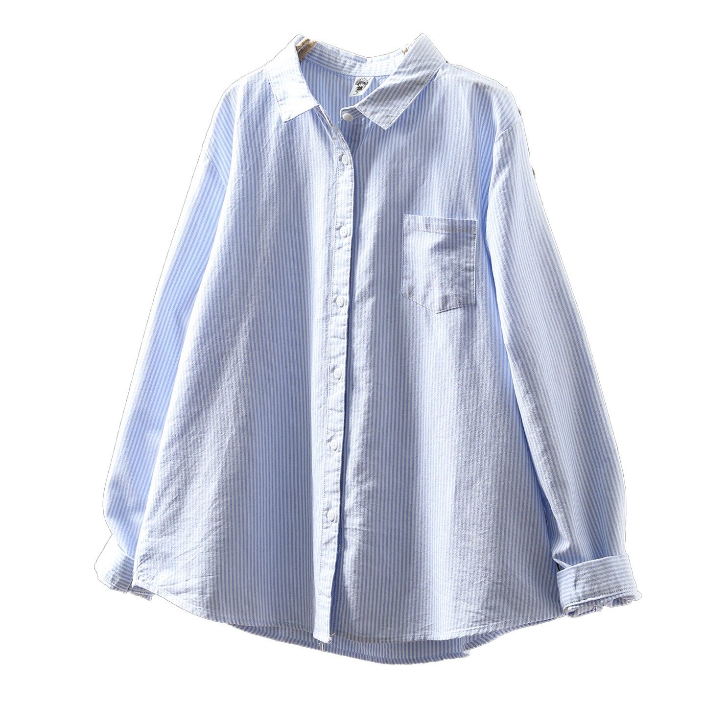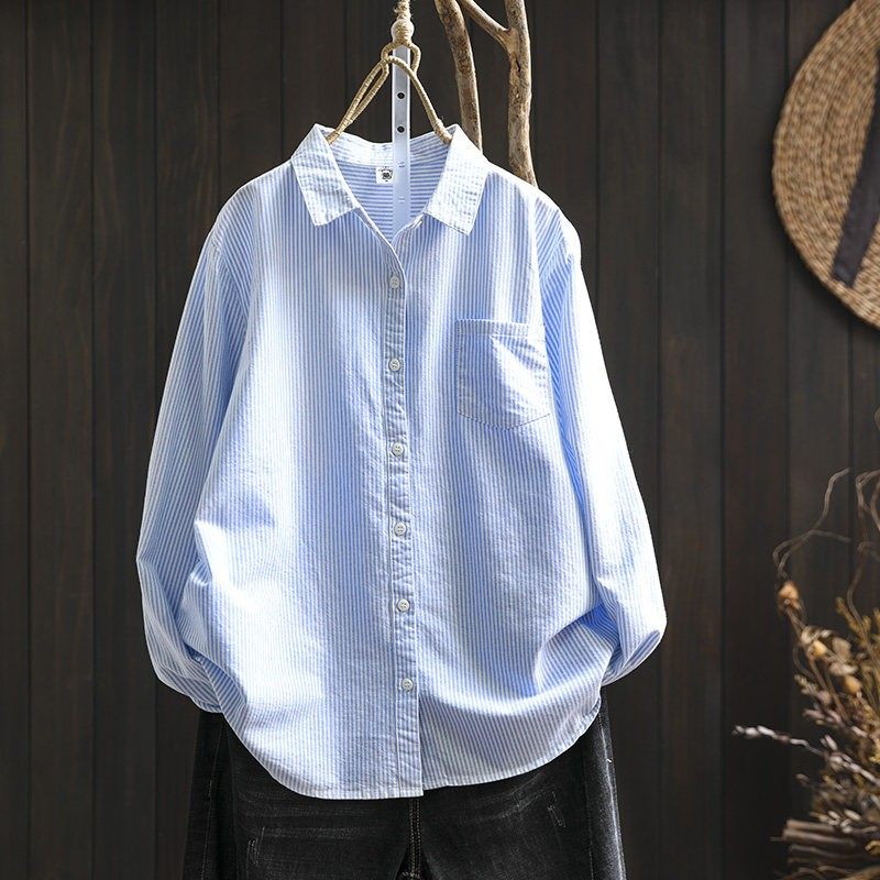 📚 气质女士上衣长袖2026新款春季宽松休闲翻领纯棉叠穿灰色条纹衬衫