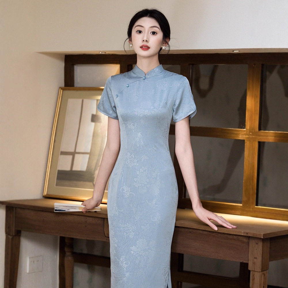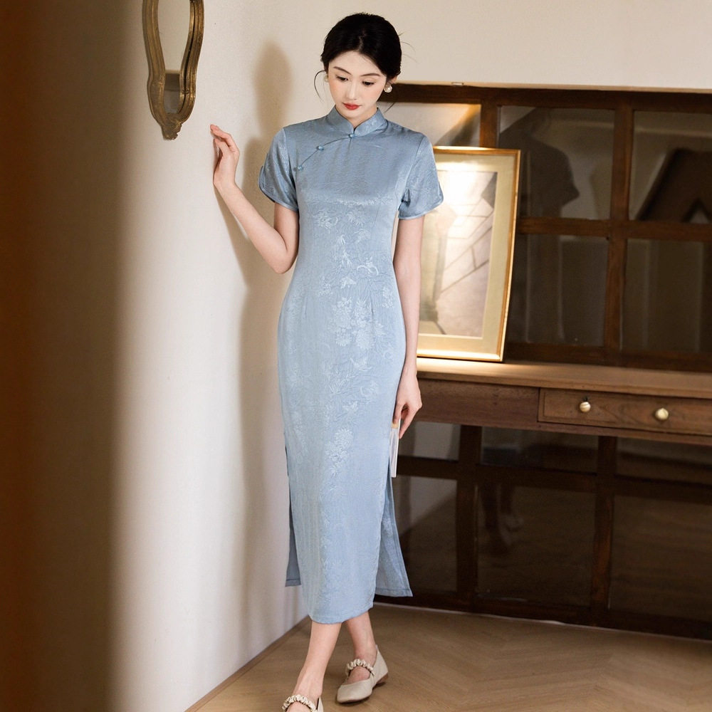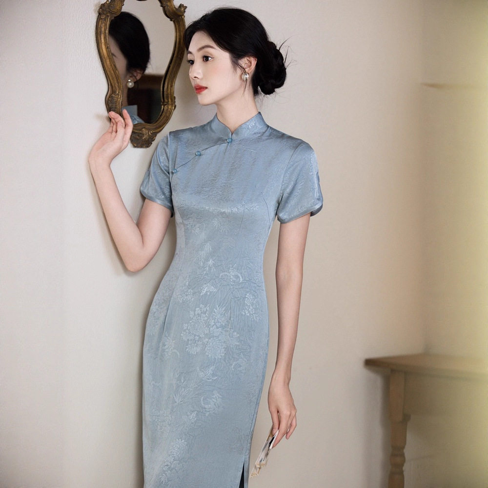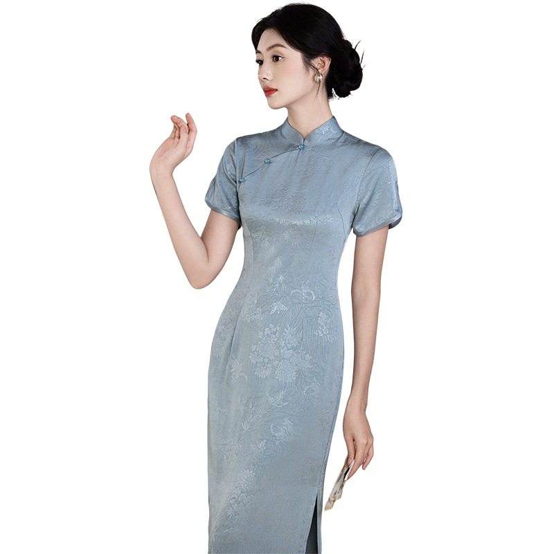 📚 蓝色旗袍女喜婆婆婚宴装2025新款礼服妈妈夏季新中式改良平时