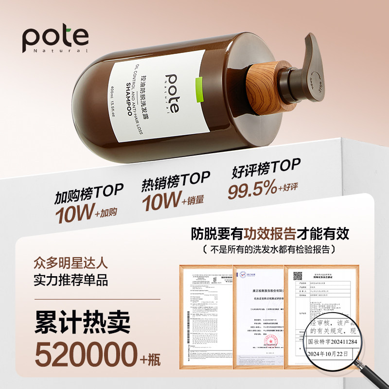 📚 【国妆特证】柏缇控油防脱洗发水侧柏叶固发蓬松柔顺女洗头露膏男