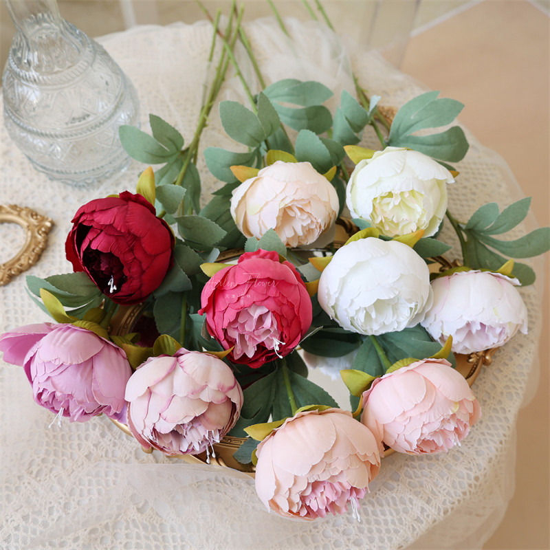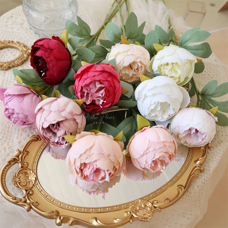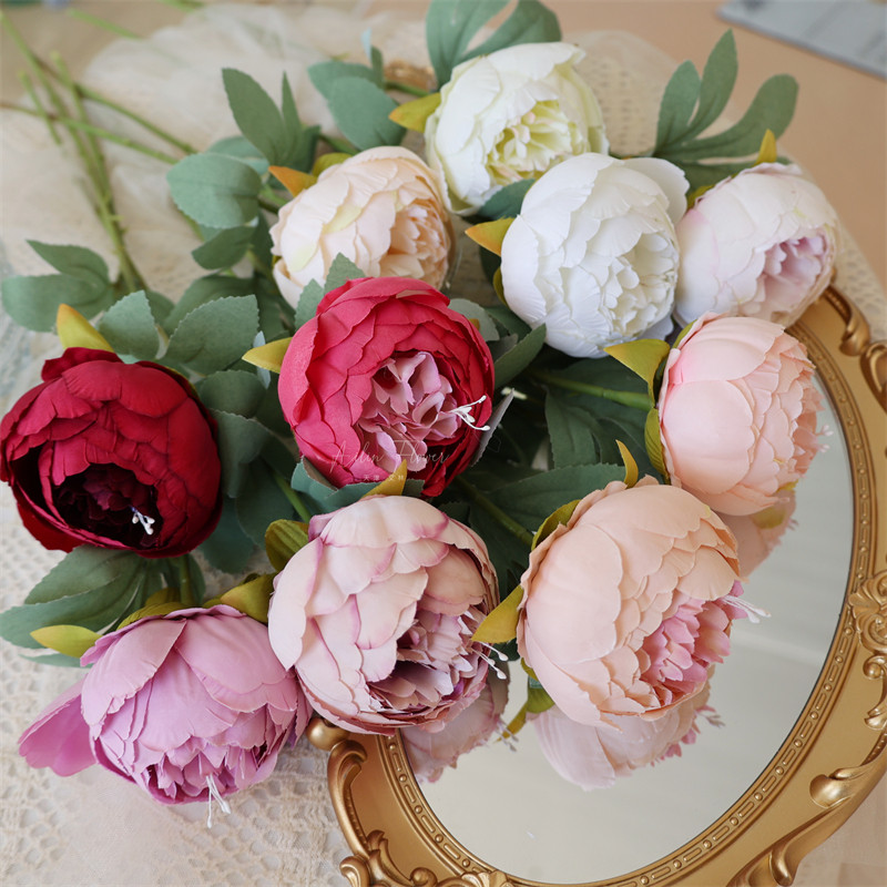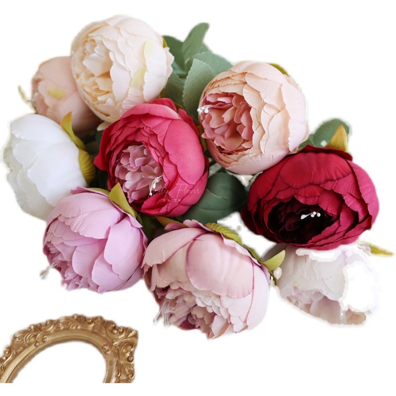📚 单枝包芯牡丹 包心芍药仿真花欧式复古秋色油画牡丹家居装饰摆放