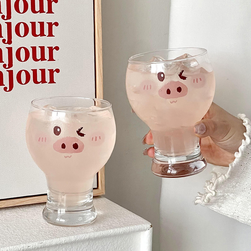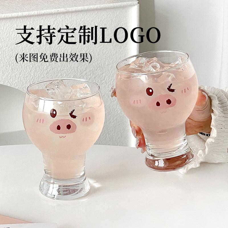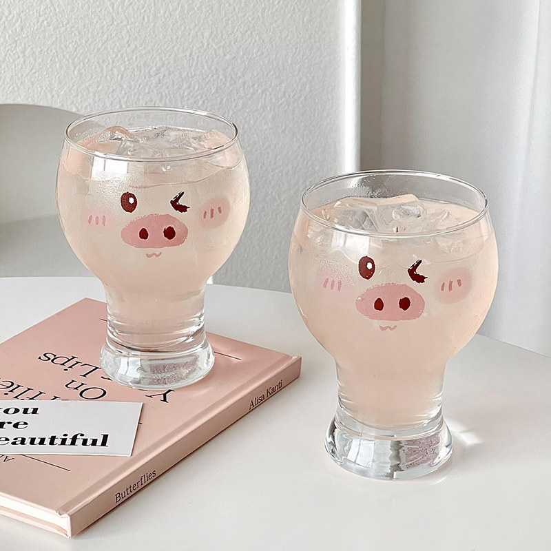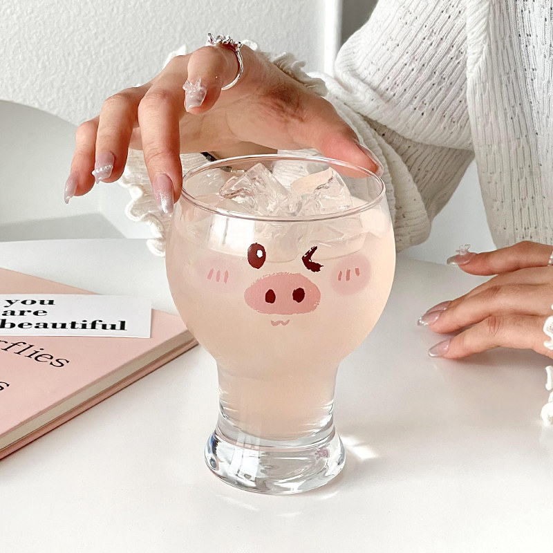 📚 可爱猪猪啤酒杯家用高颜值卡通创意玻璃喝水杯女生牛奶果汁饮料杯
