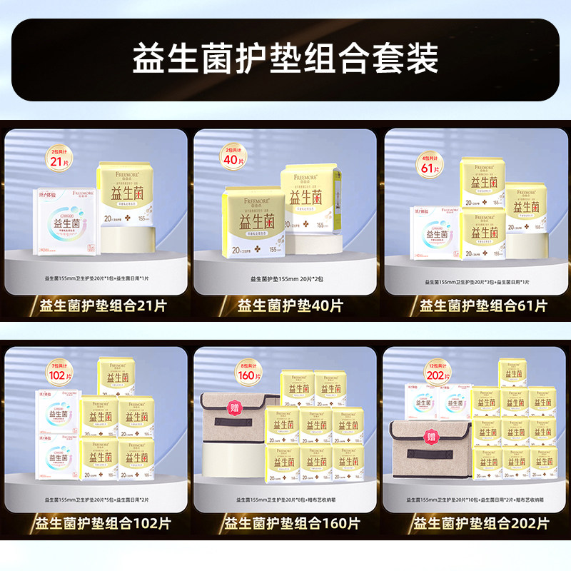 📚 自由点益生菌护垫155mm超薄透气棉柔迷你姨妈巾小卫生巾官方正品