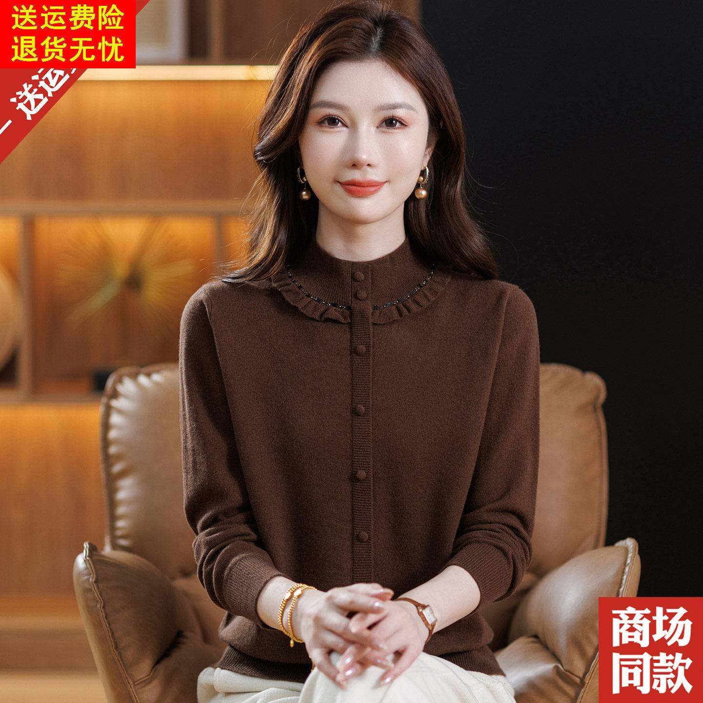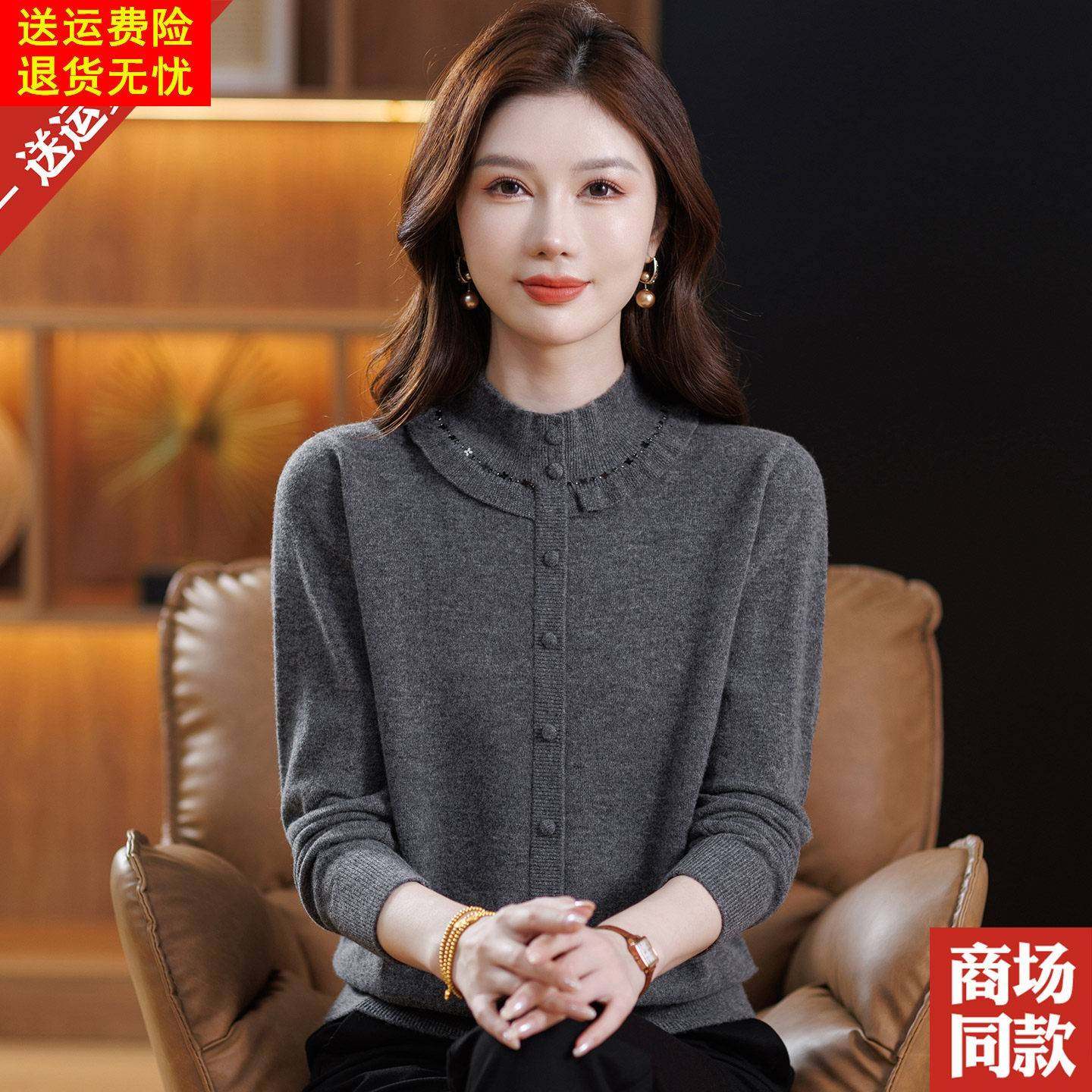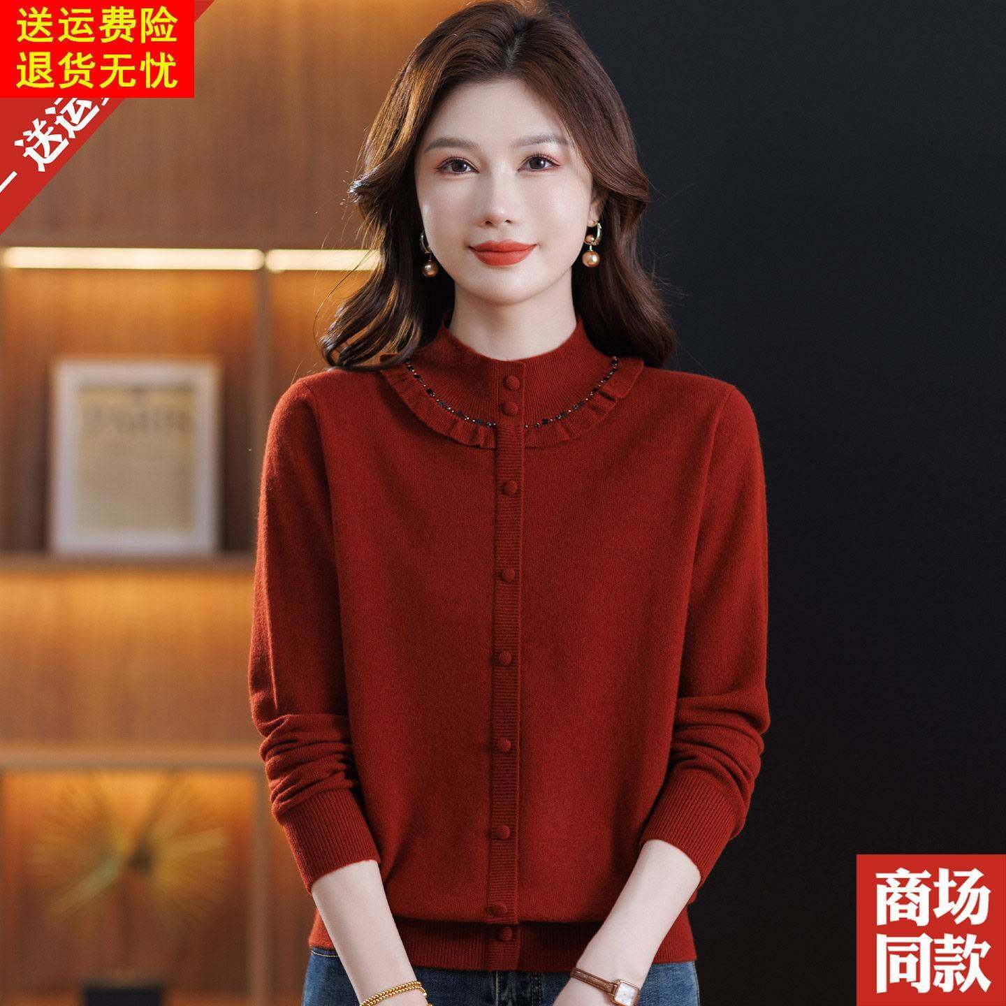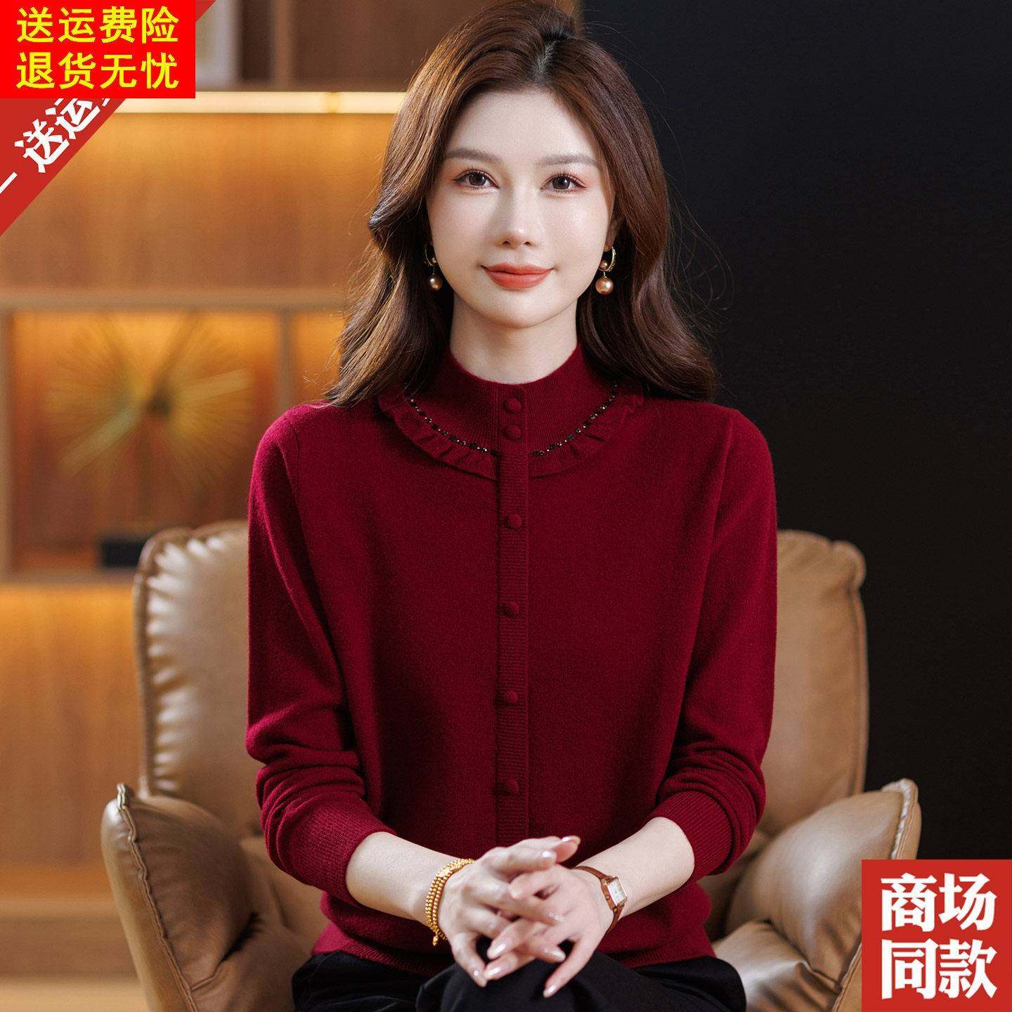 📚 100%羊毛衫半高领套头红色毛衣秋冬中老年妈妈洋气打底衫女针织衫