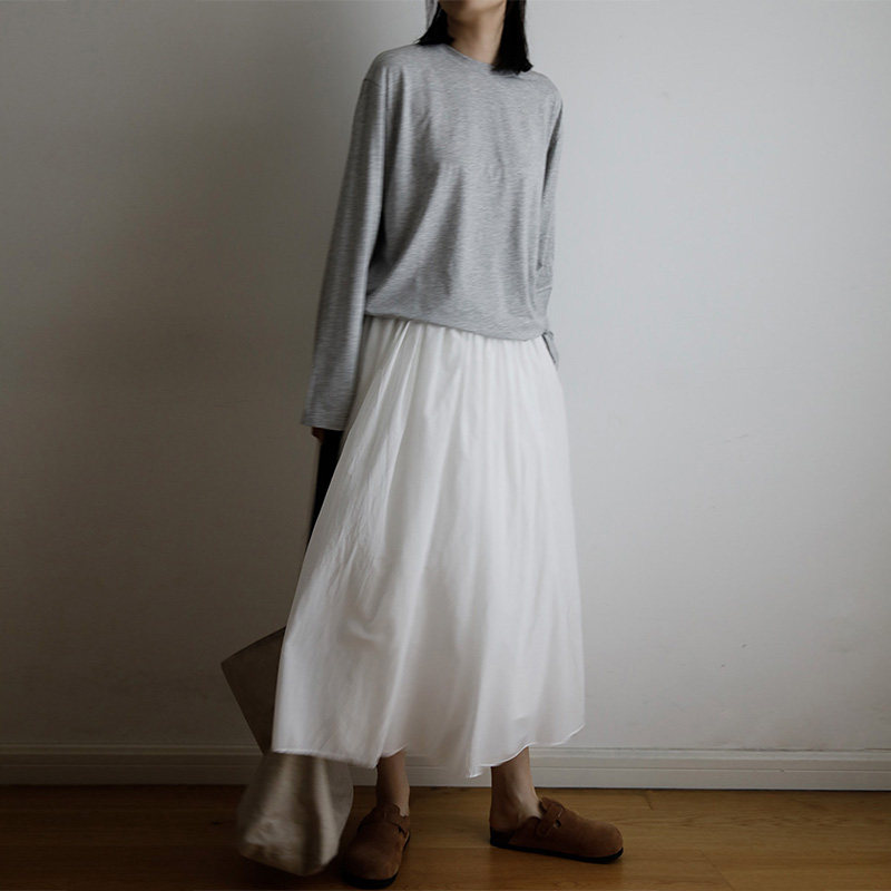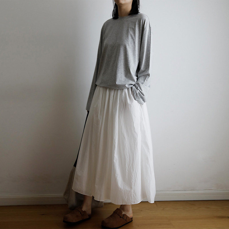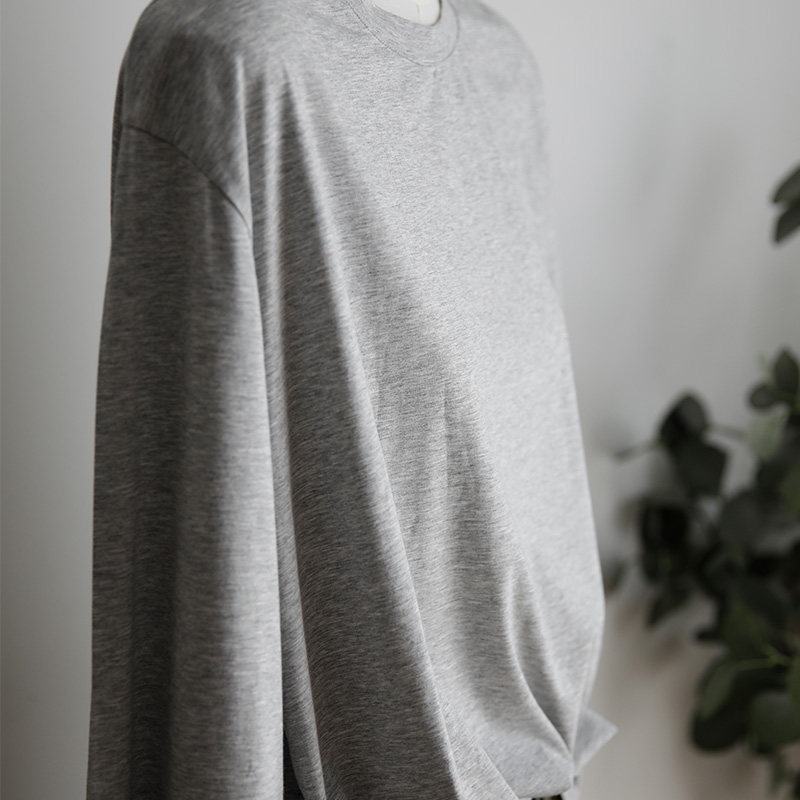 📚 艺间文艺极简百搭休闲宽松感薄圆领长袖t恤防晒tee浅灰色2025春夏