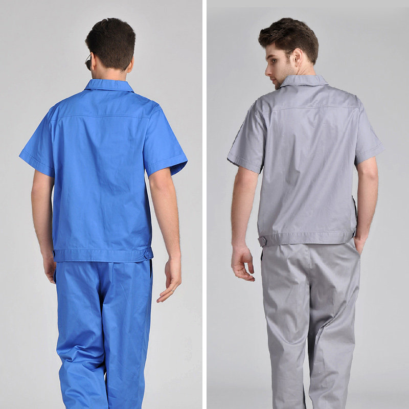 📚 纯棉工作服套装男蓝色夏季薄款短袖电力焊工地劳保服车间厂服定制