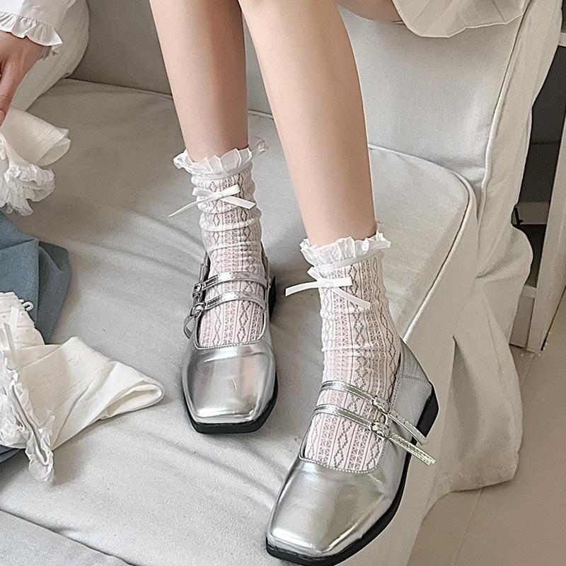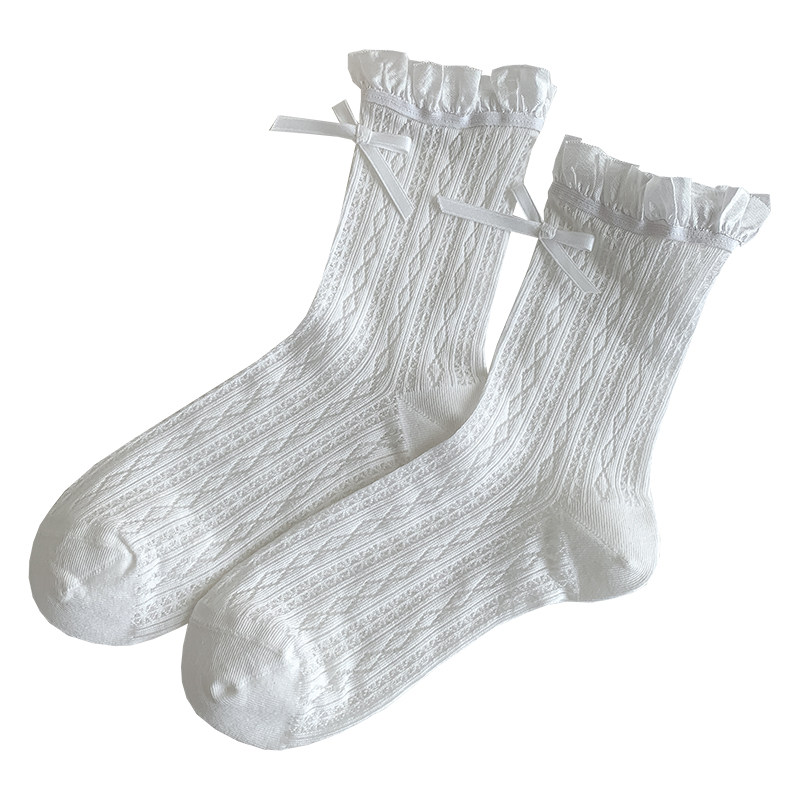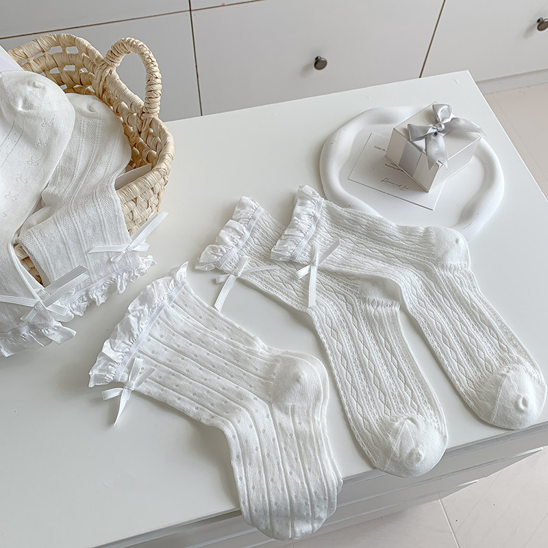📚 春夏季白色薄款堆堆袜镂空花边可爱日系百搭miu系袜子女中筒袜
