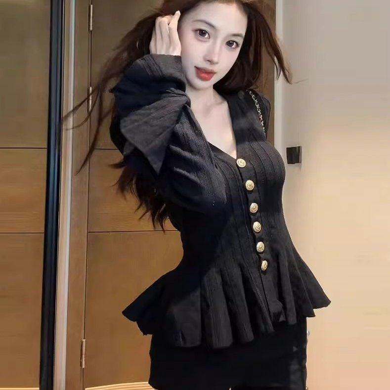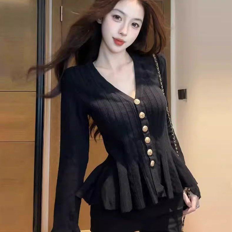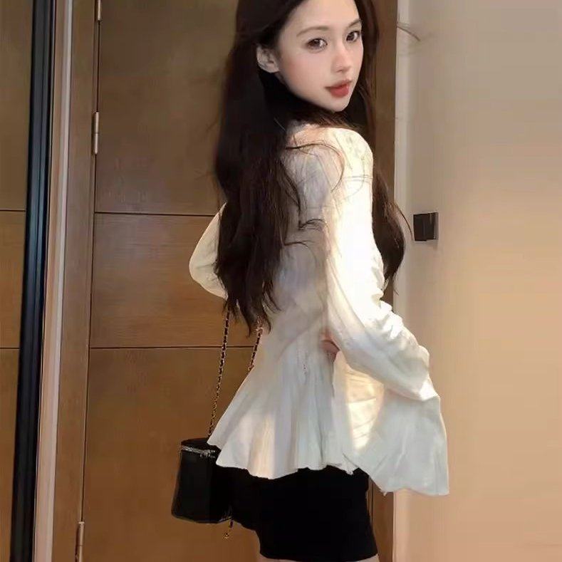 📚 韩版小众毛衣开衫女秋冬新款千金感喇叭袖上衣气质长袖针织衫