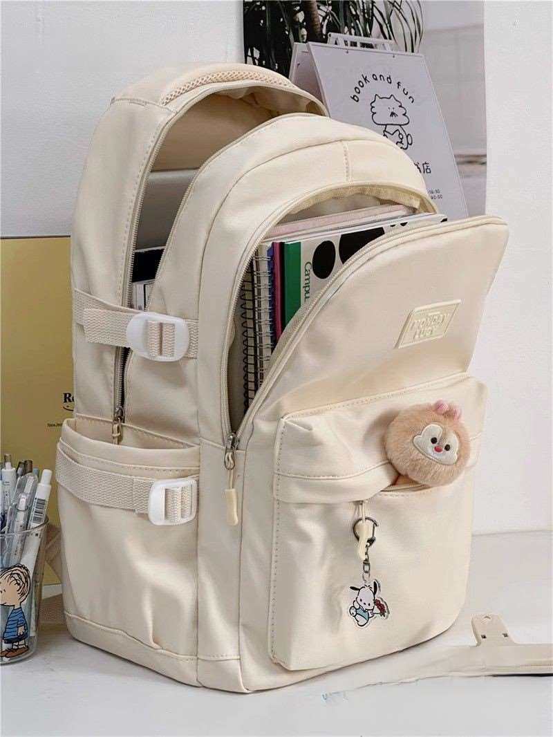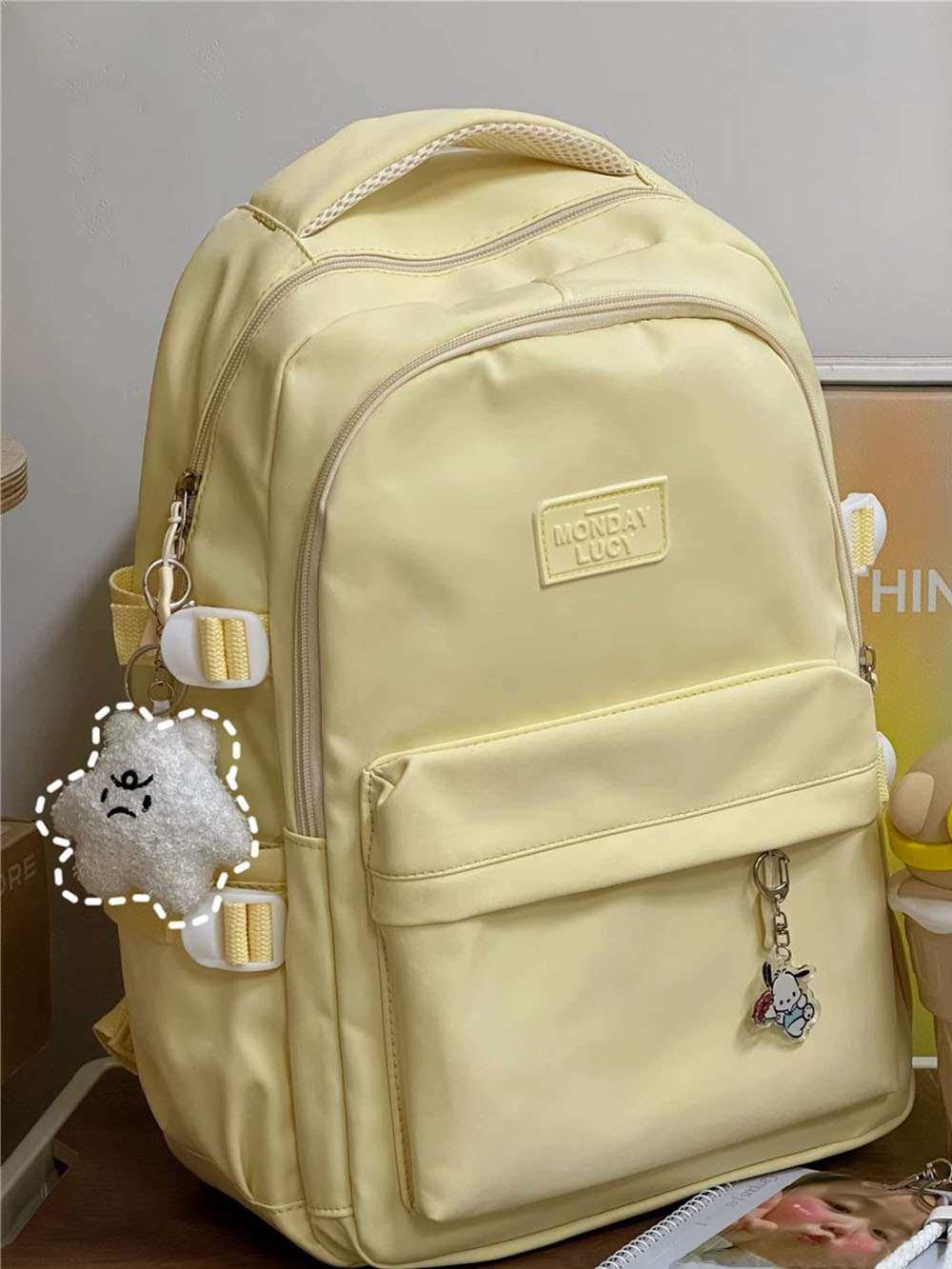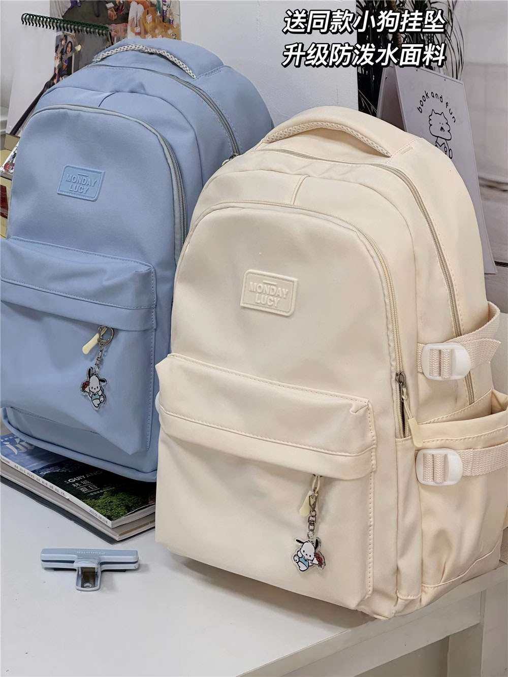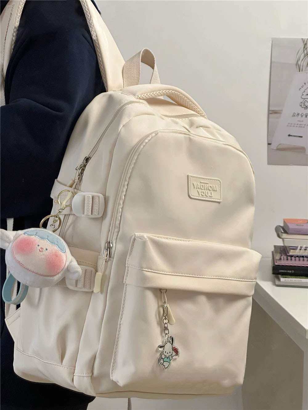 📚 奶黄色书包日系新款初中学生双肩背包青少年高中大容量颜值高
