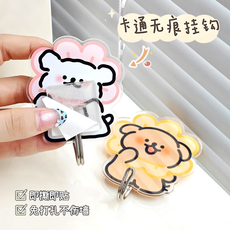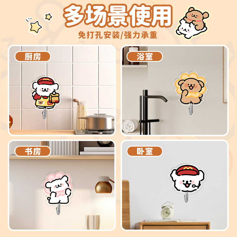📚 可爱线条小狗毛巾挂钩免打孔强力承重厨房卫生间宿舍门后无痕粘钩