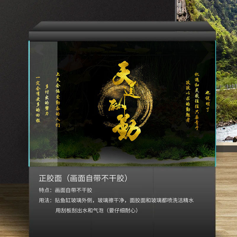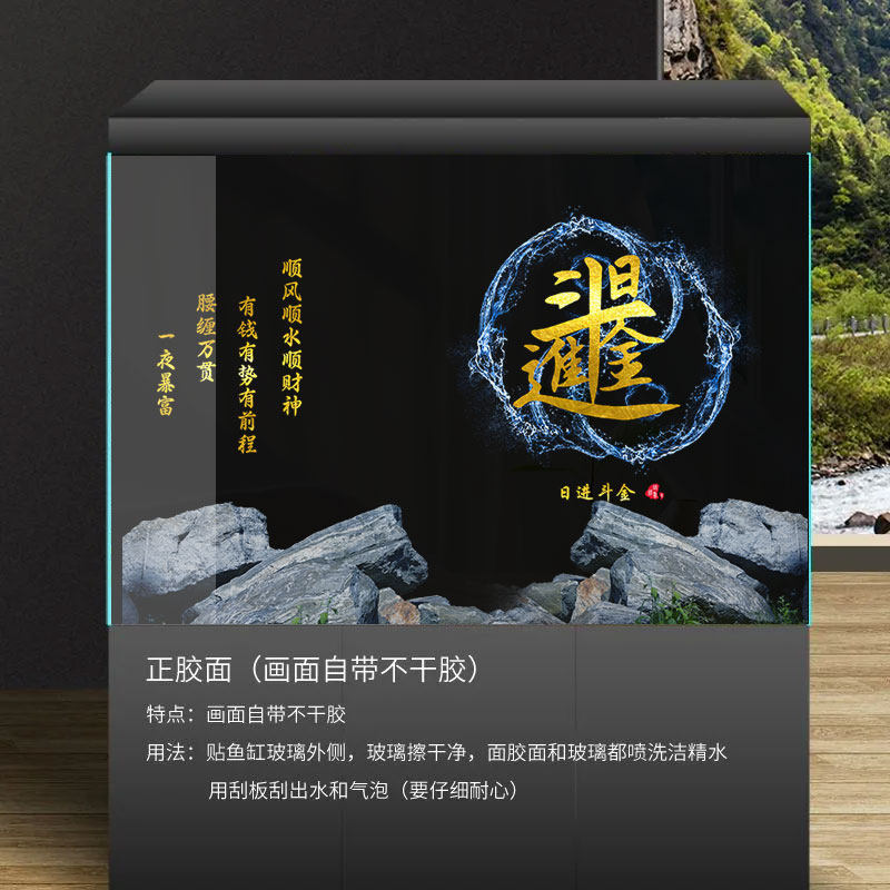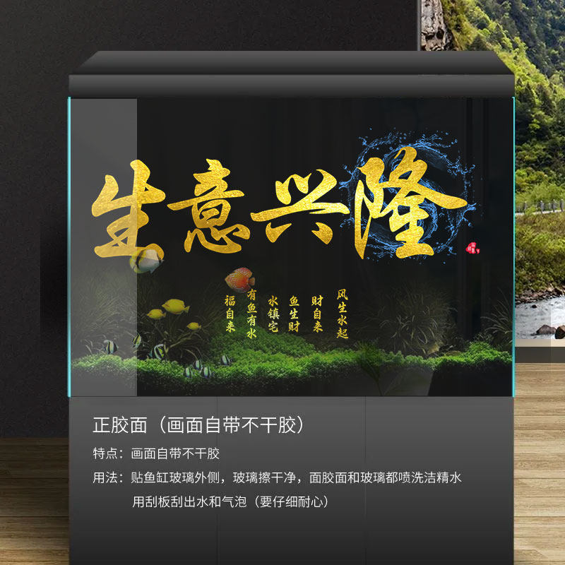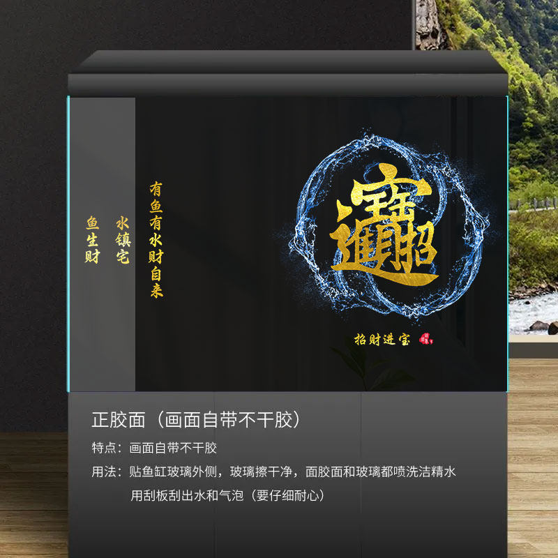 📚 流水生财办公室鱼缸背景贴纸正面胶壁画水族箱造景5d背景装饰贴画
