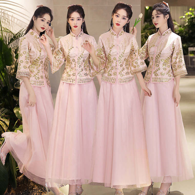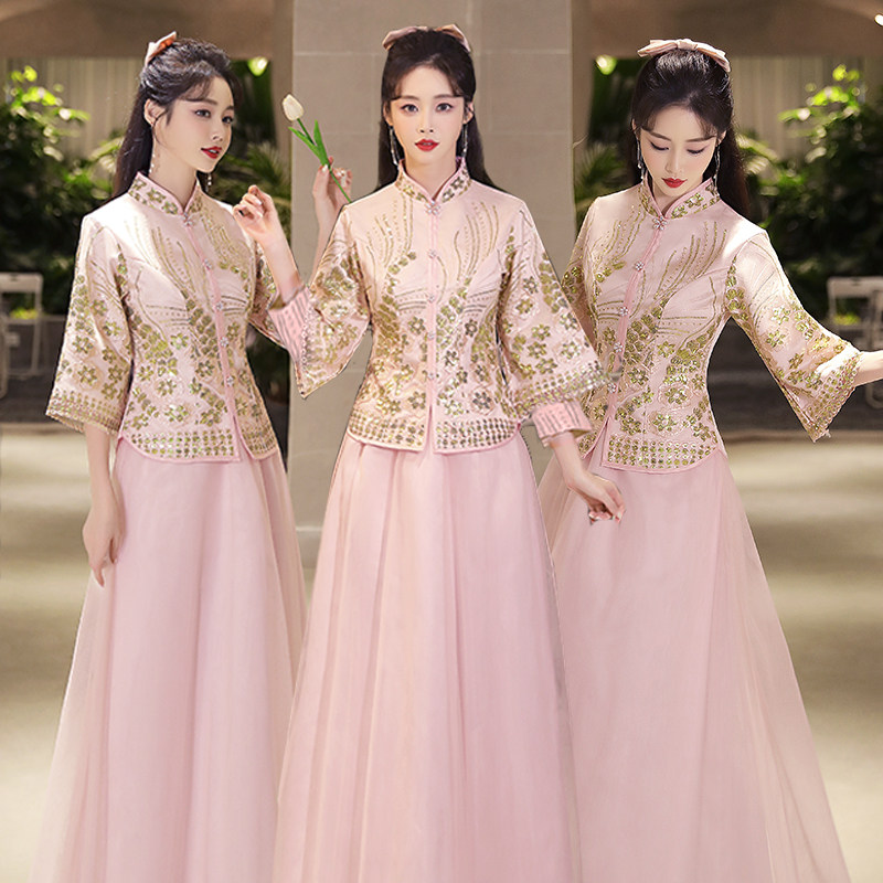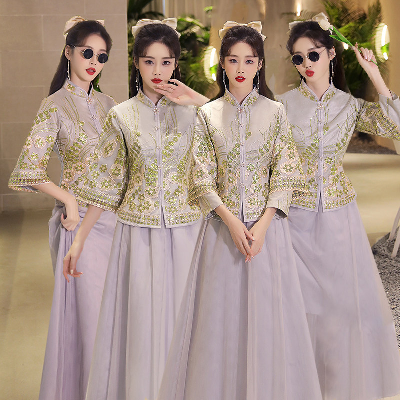 📚 中式伴娘服2024年新款秋冬季婚礼中国风秀禾伴娘团姐妹裙长袖礼服