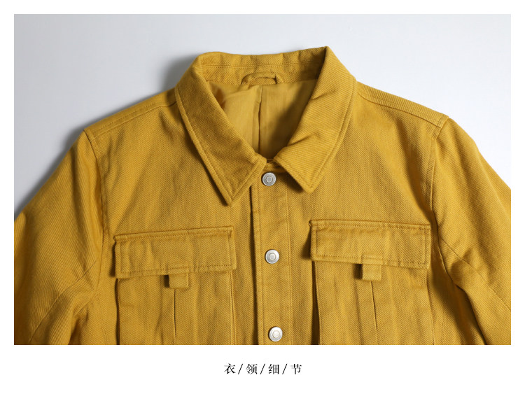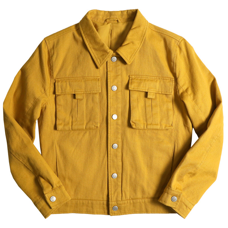 📚 [夹克外套多选]复古工装风微厚短款斜纹牛仔布亮黄色修身机车夹克