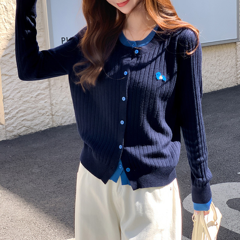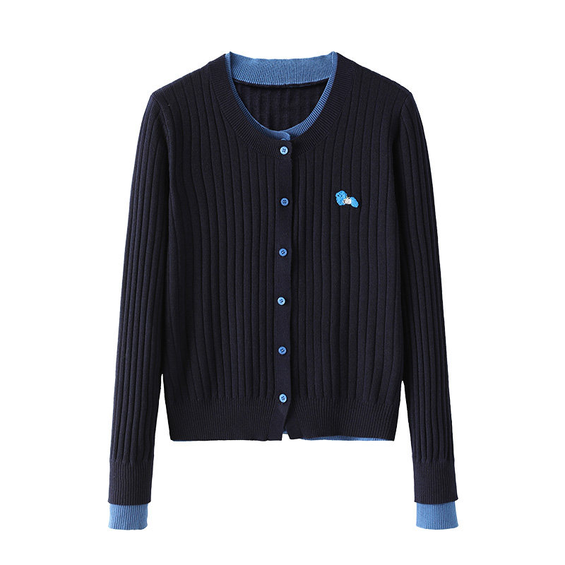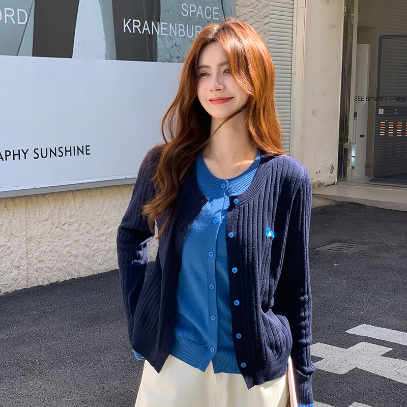📚 绵羊毛+桑蚕丝针织开衫女外套长袖羊毛衫春秋假两件蓝色针织衫女