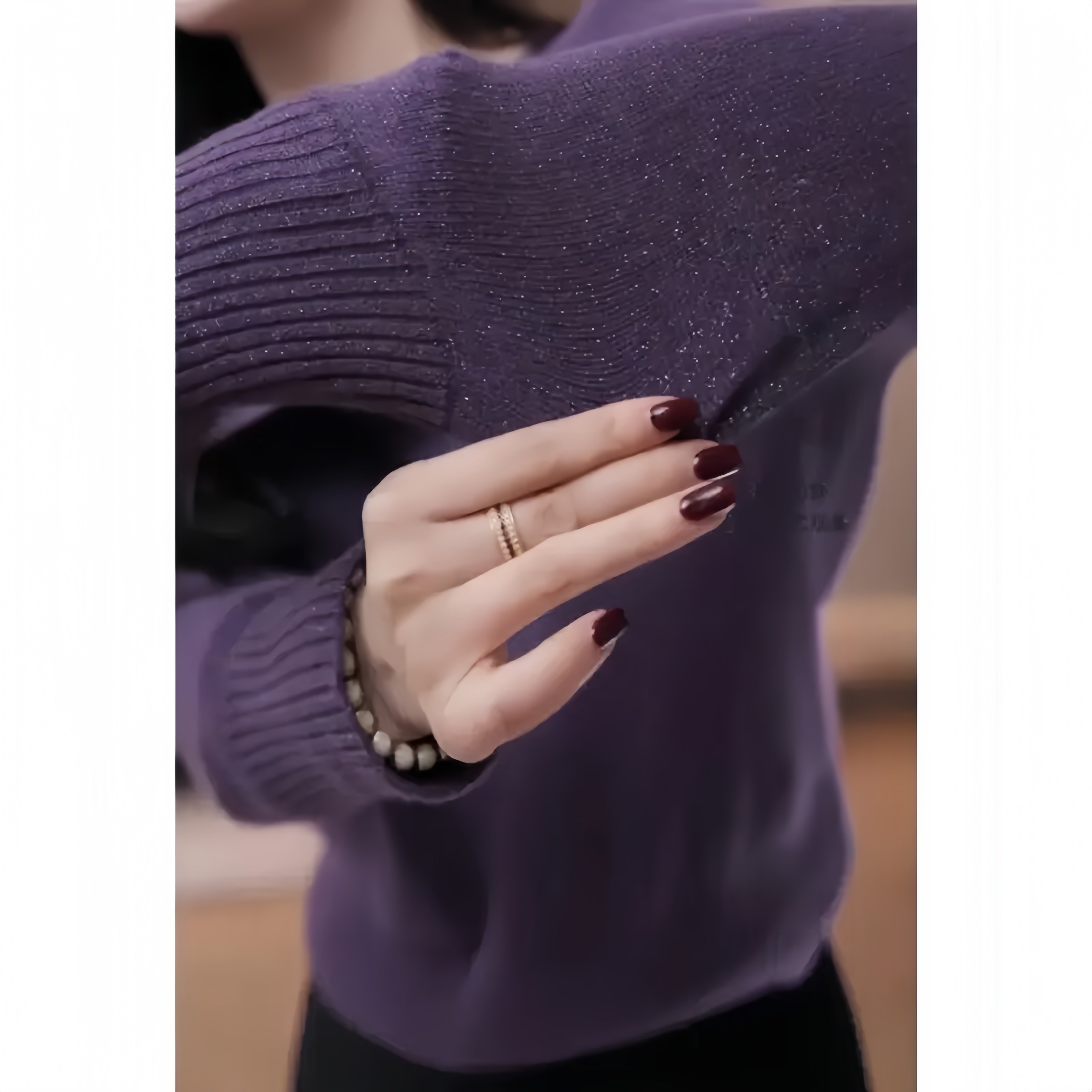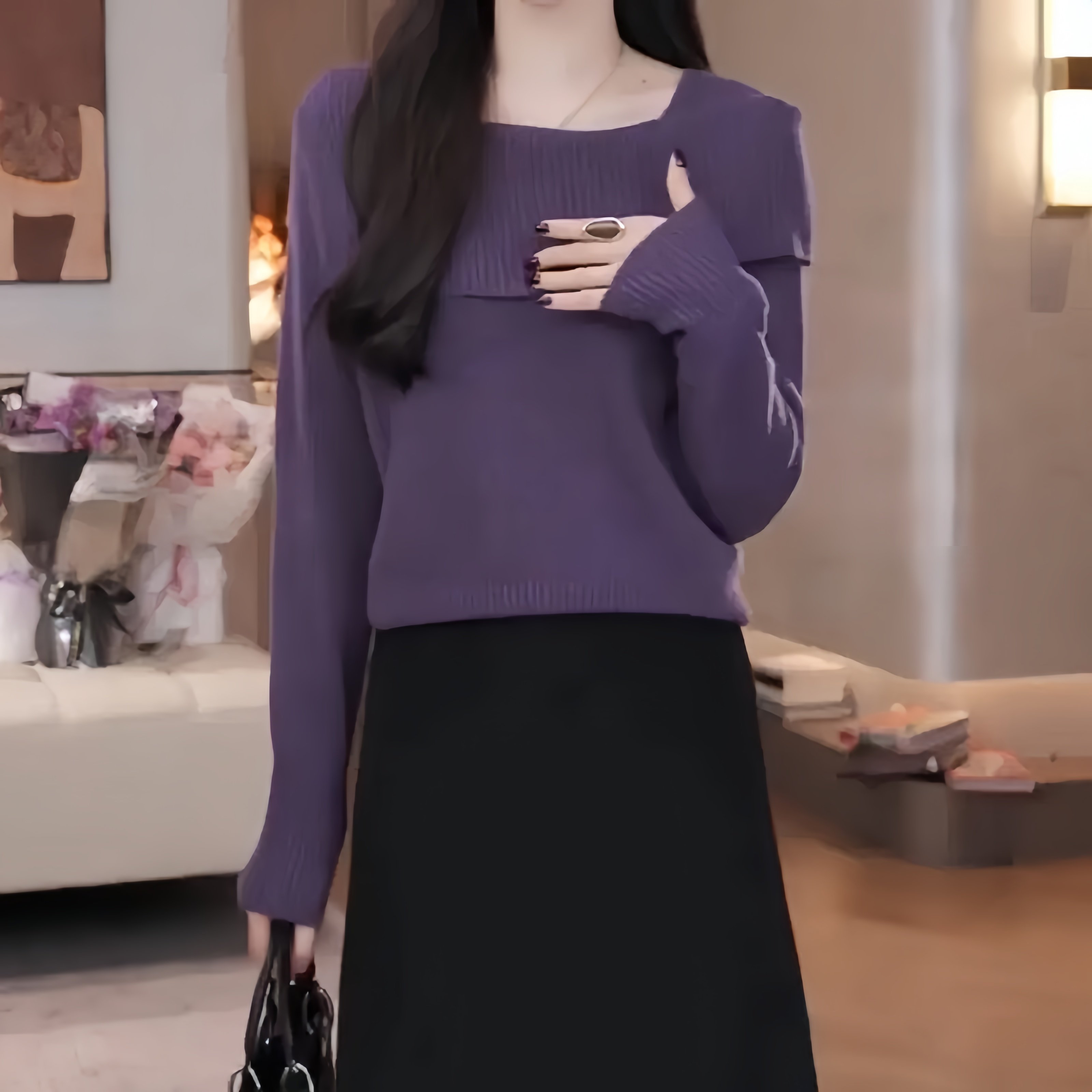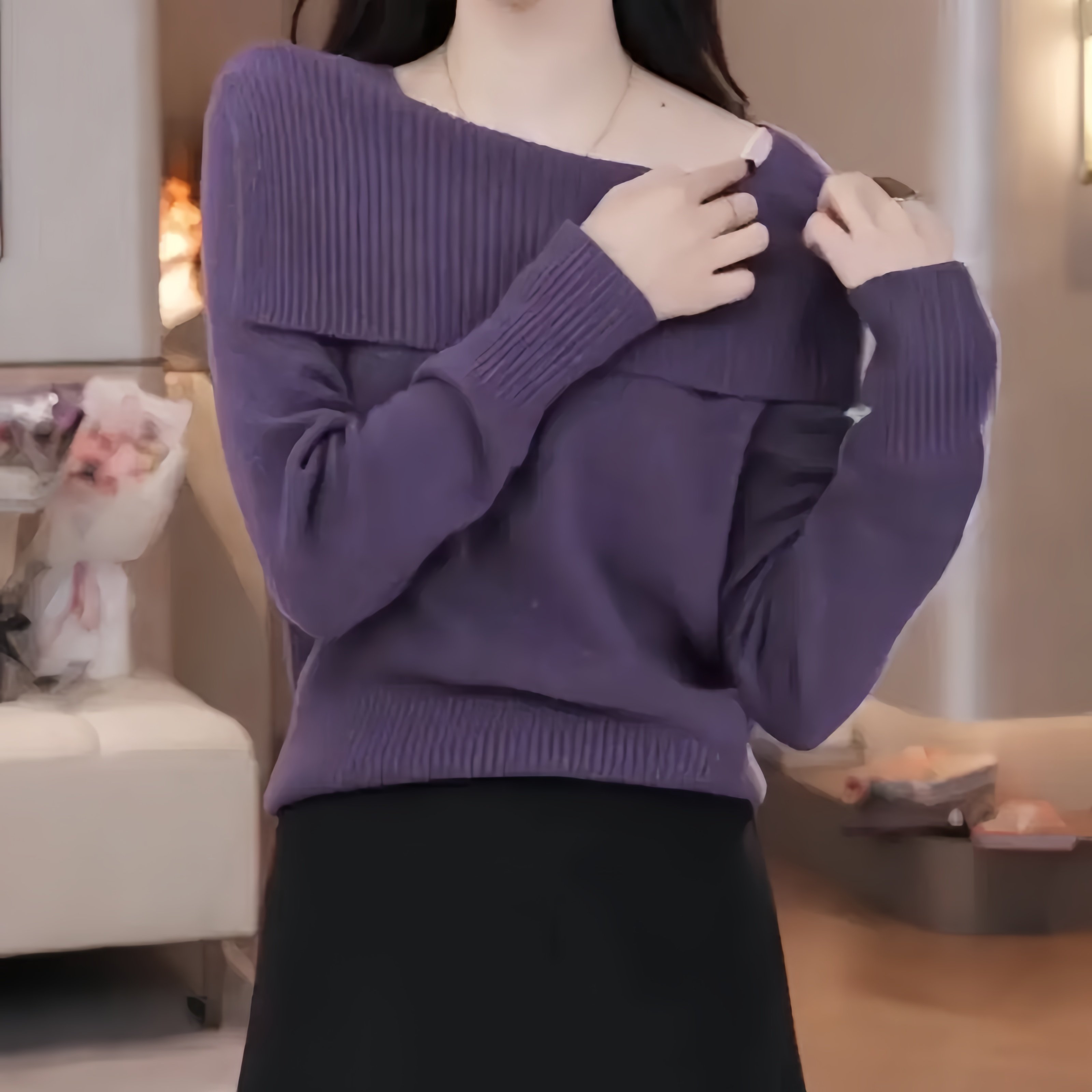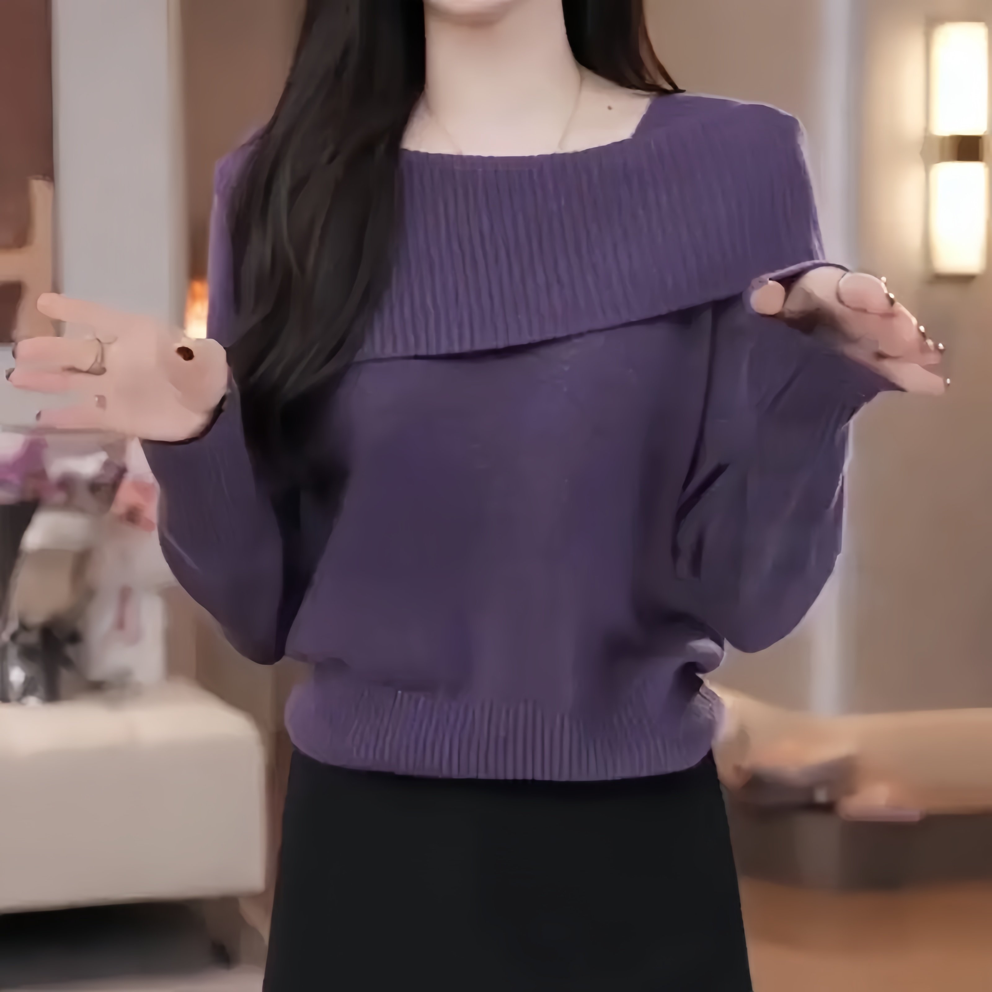 📚 慵懒高级感紫色毛衣秋冬女2025新款可外穿内搭打底一字肩针织上衣