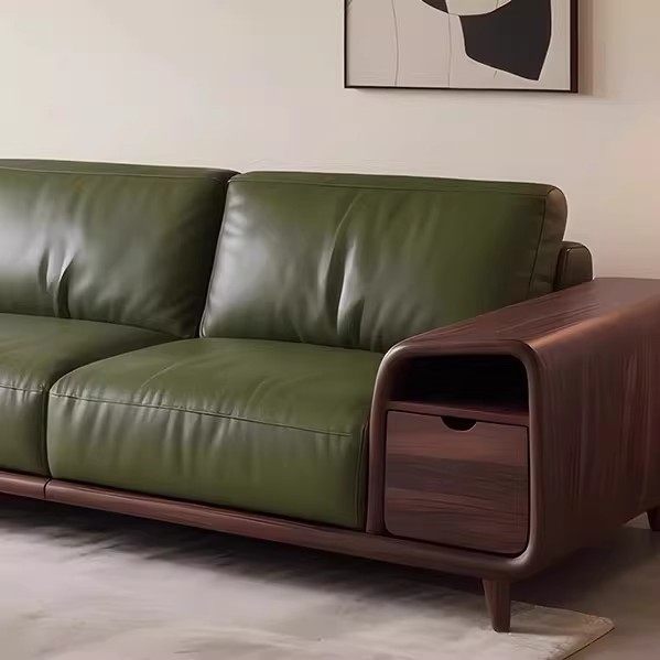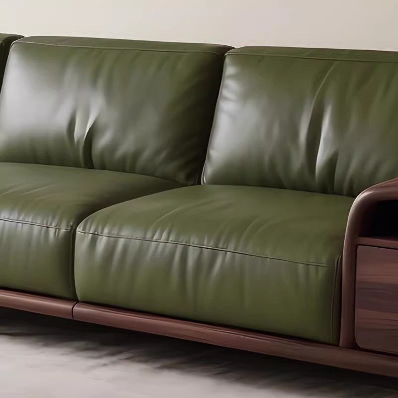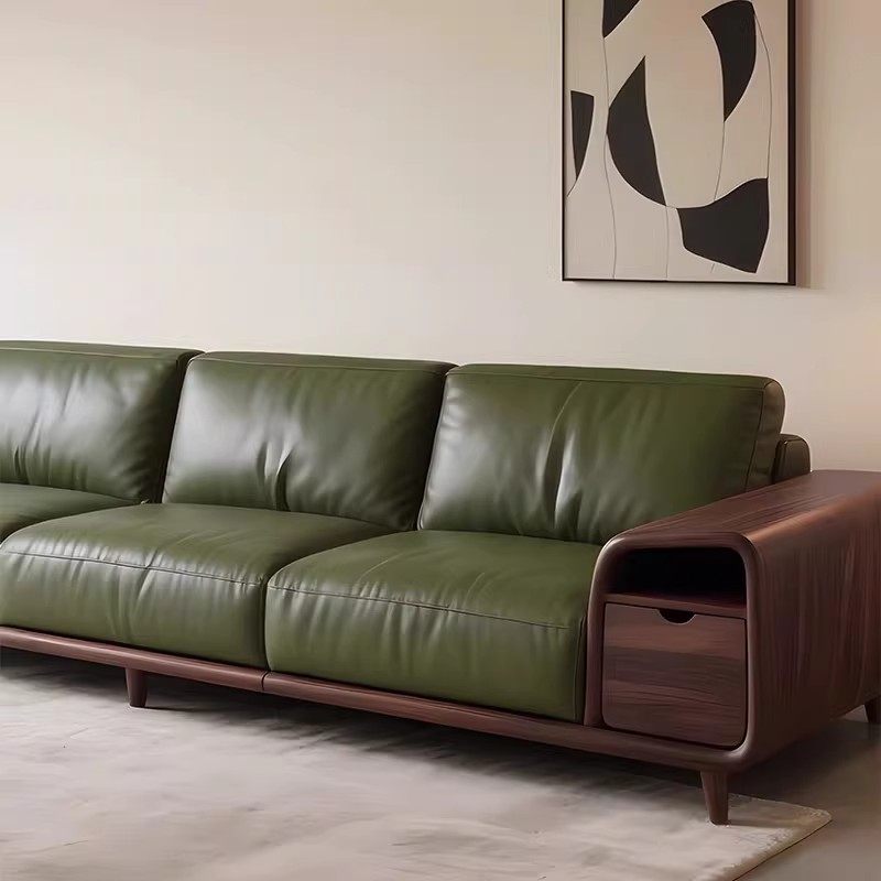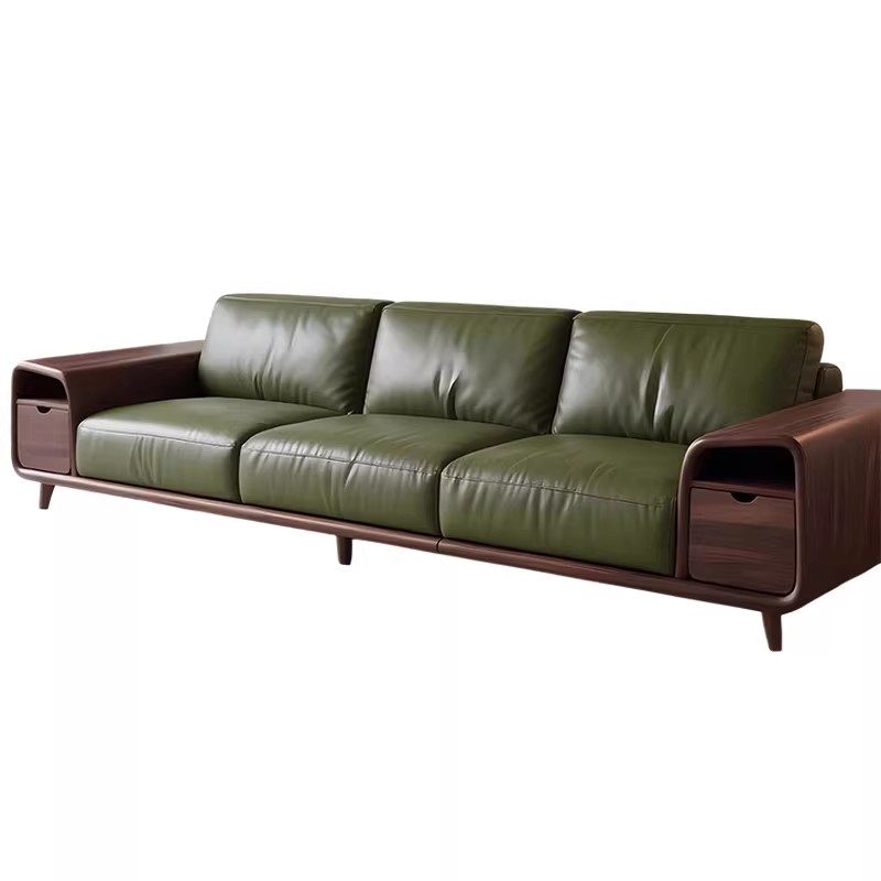 📚 意式极简黑胡桃木实木沙发三人位真皮大小客厅直排储物沙发墨绿色