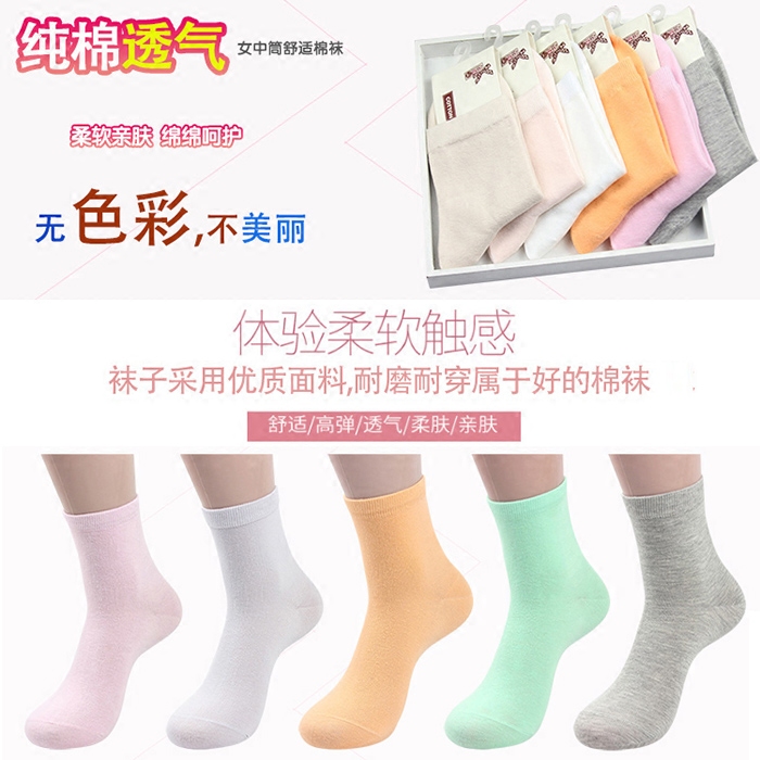 📚 5双装袜子女袜纯棉中筒袜防臭吸汗舒适透气无骨纯白色女士全棉袜