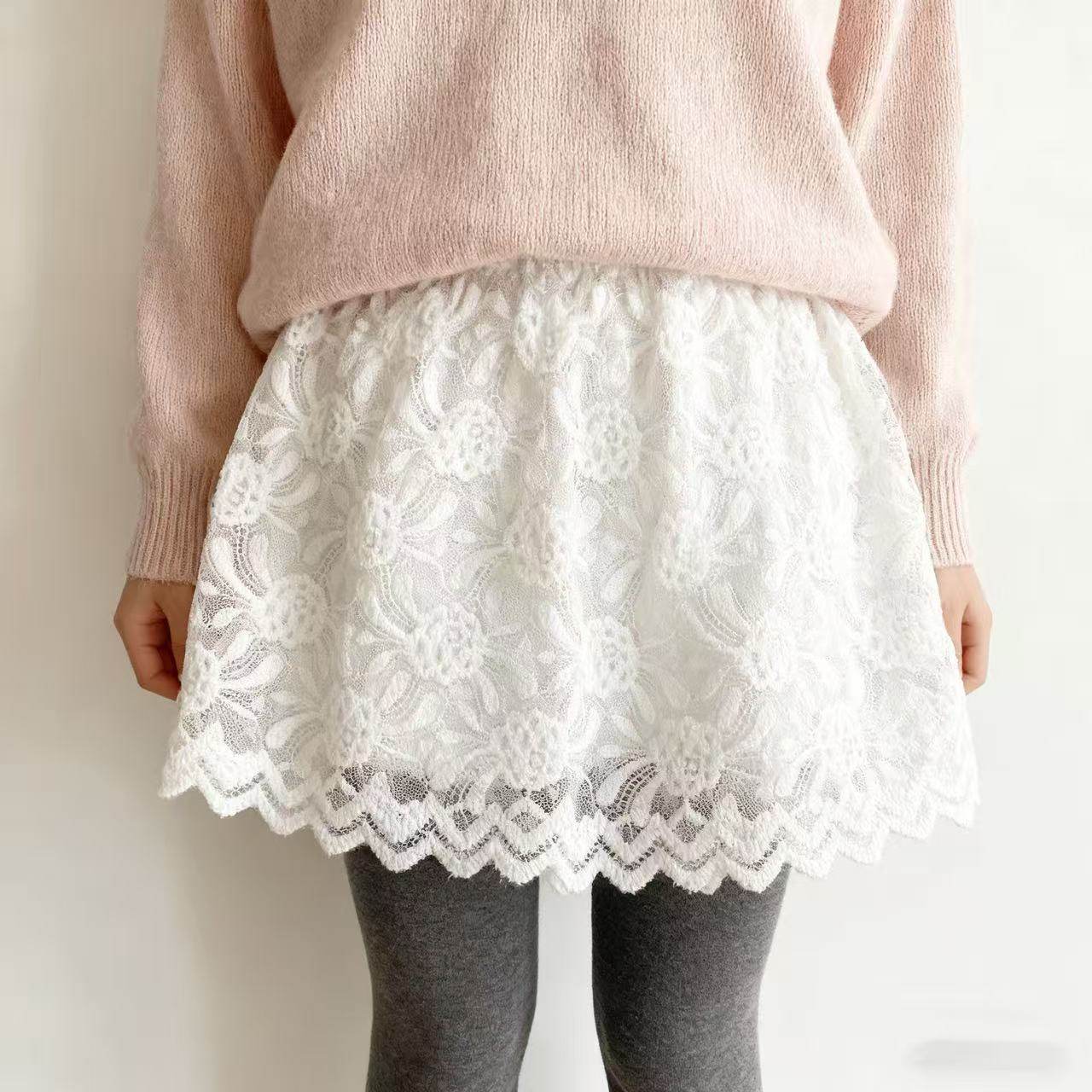 📚 秋冬大码黑色显瘦蕾丝半身裙女短裙叠穿遮屁股打底裙花边下摆