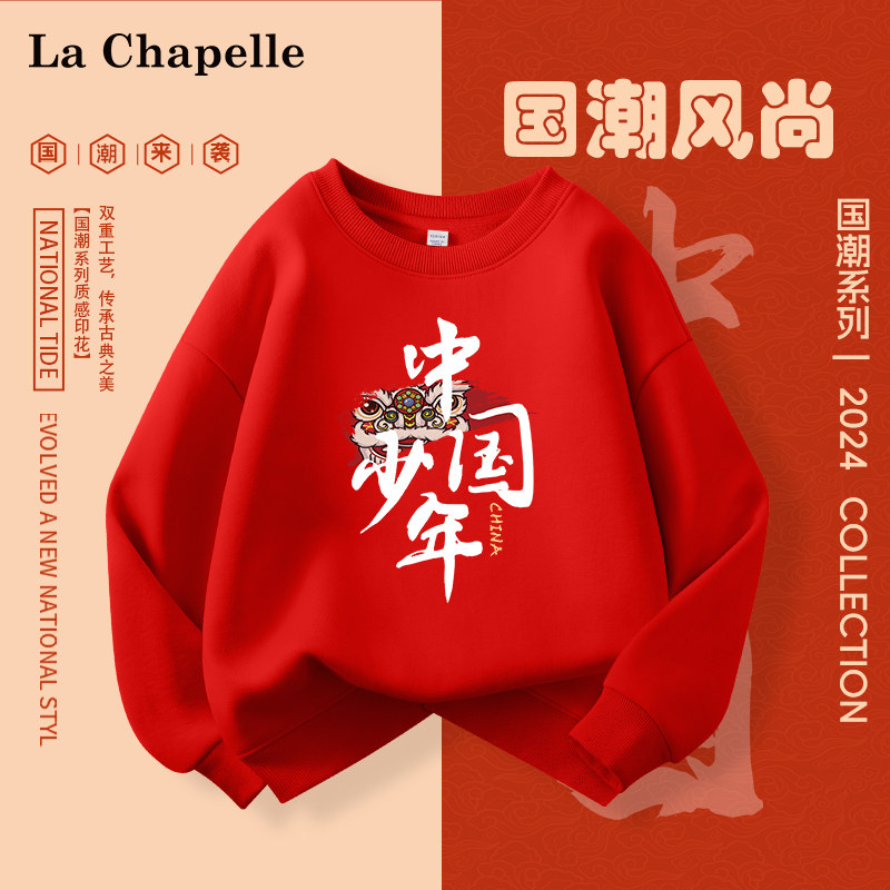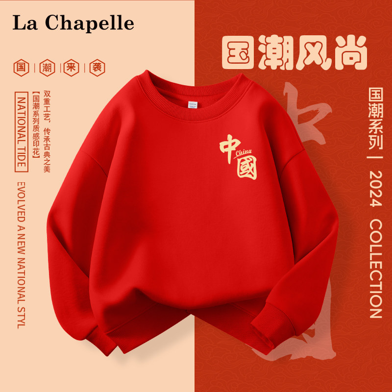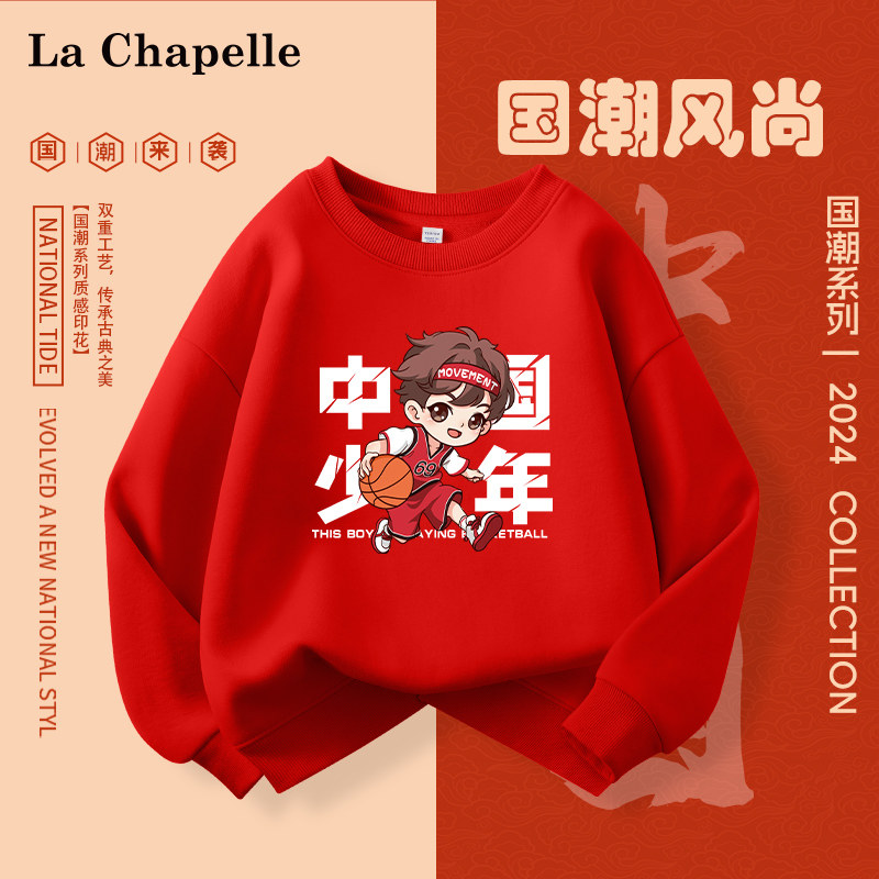 📚 儿童卫衣春秋装女大童秋季爱国运动国潮衣服男童红色上衣