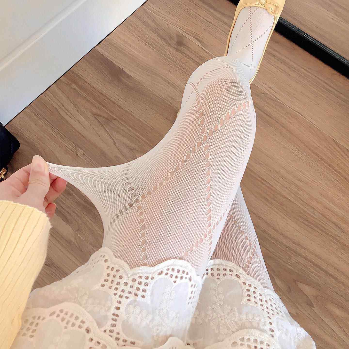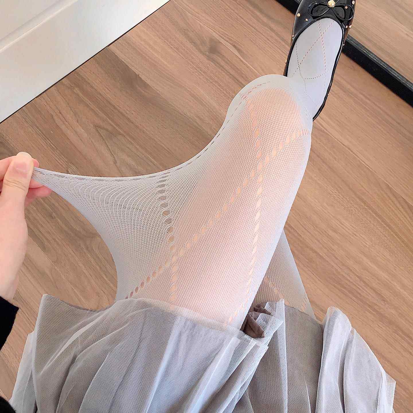 📚 秋冬烟灰色菱形格连裤袜薄款奶白色打底裤袜格雷系灰色丝袜1225z