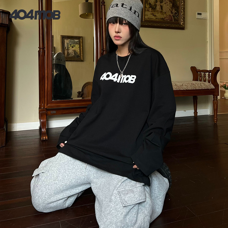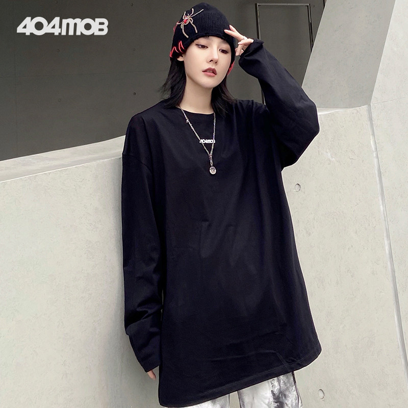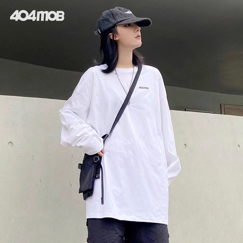 📚 404MOB基础款百搭黑白色长袖T恤男女同款ins宽松纯棉潮牌休闲上衣