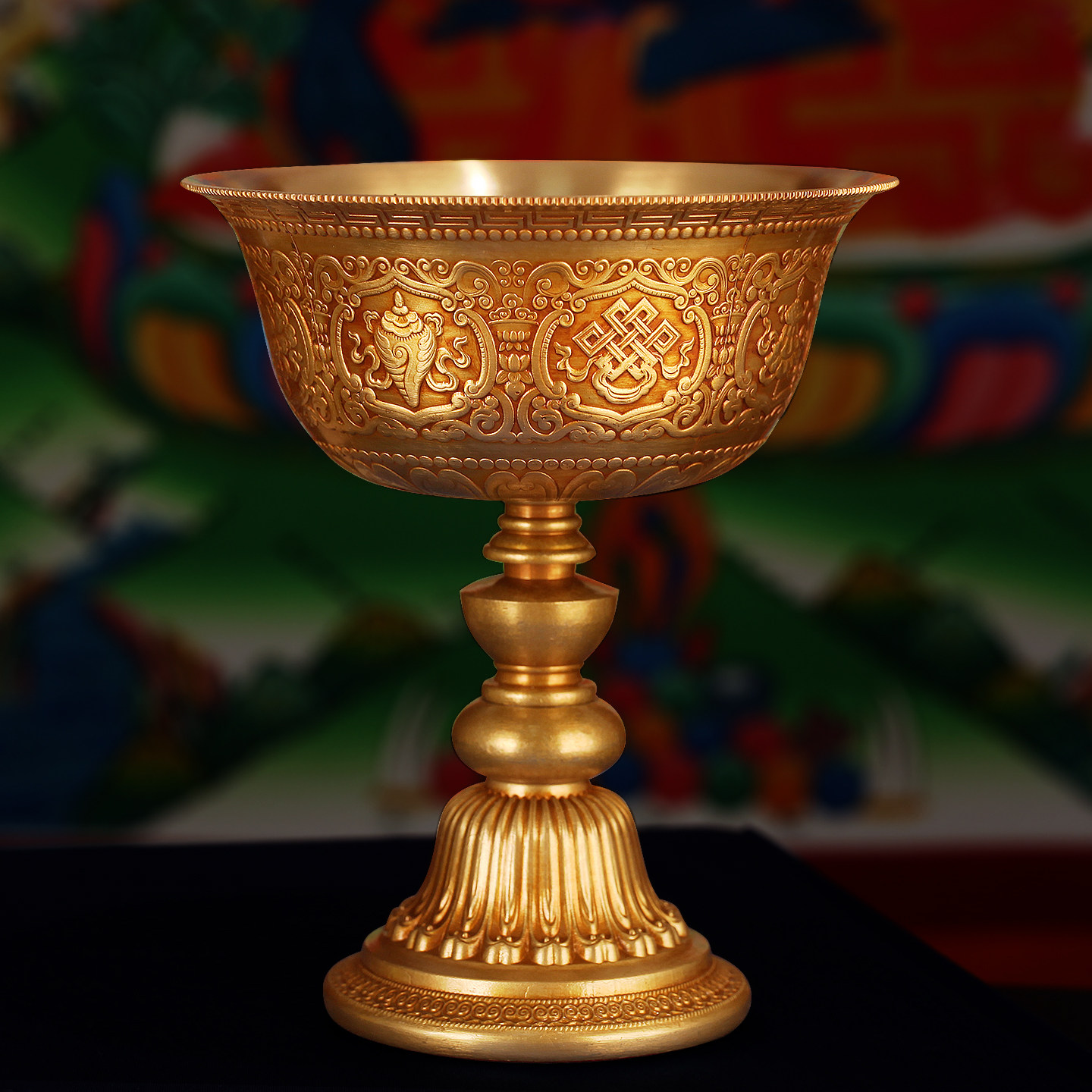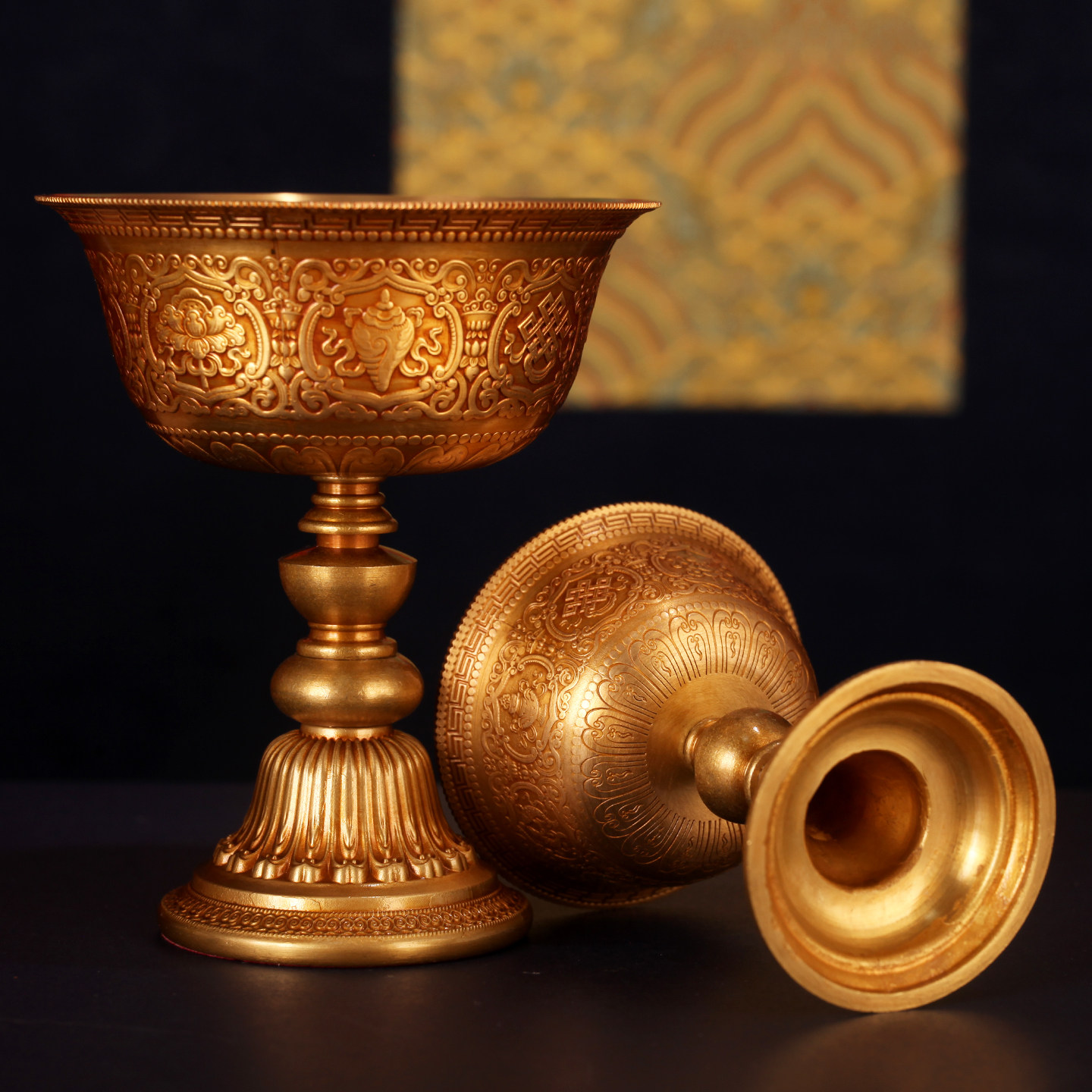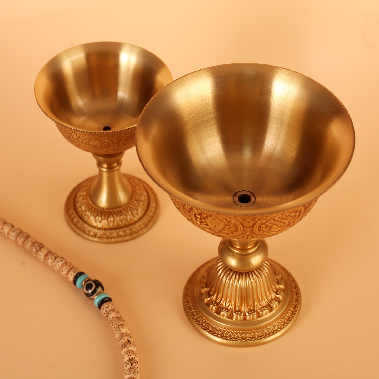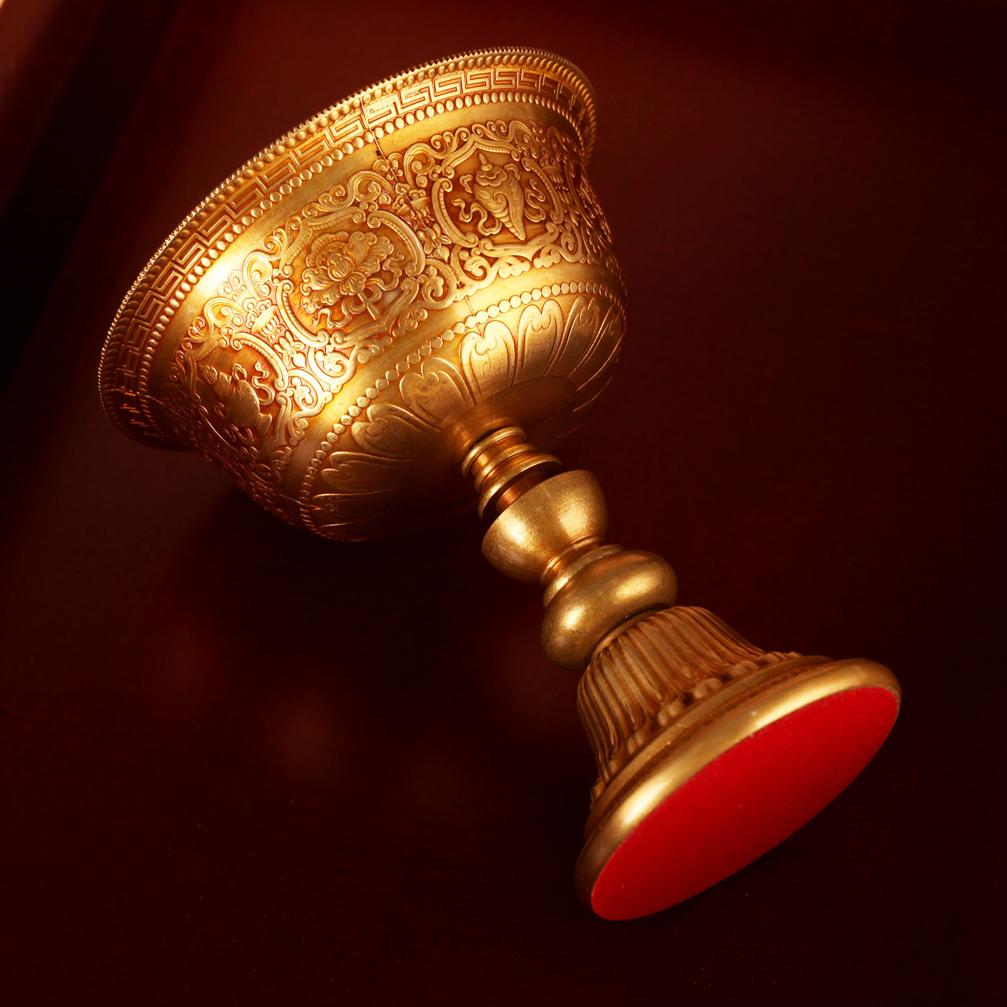 📚 慧宝西藏纯铜酥油灯灯座 八吉祥家用蜡烛台 灯盏架液体酥油底座