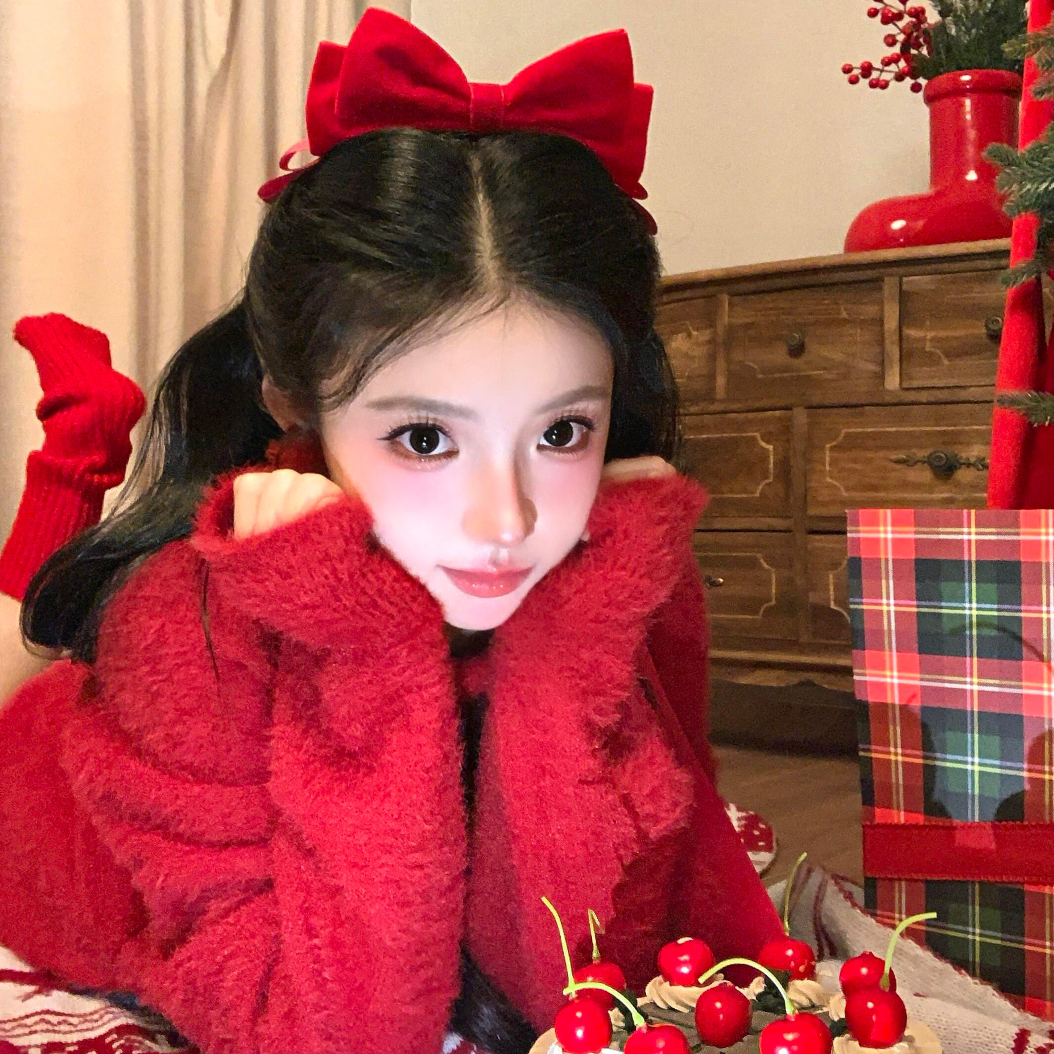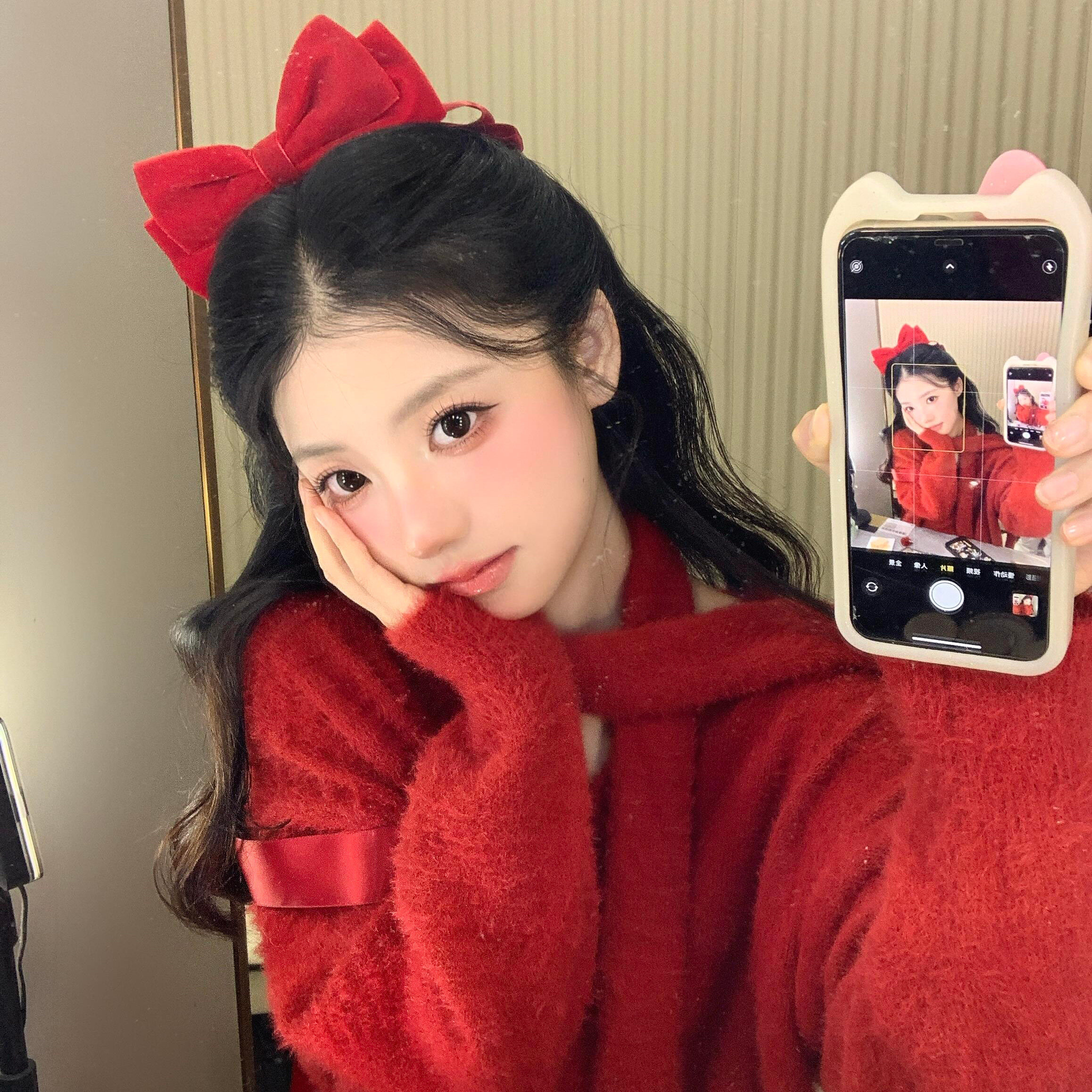 📚 圣诞节头饰红色飘带蝴蝶结发夹子女甜美高级感显白发卡顶夹发饰品