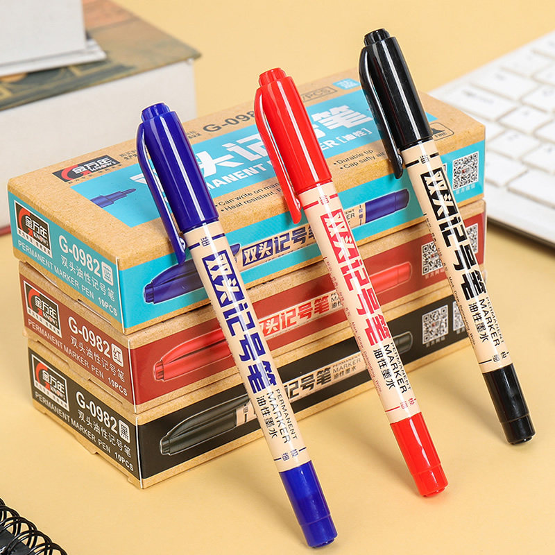 📚 金万年G-0982小双头记号笔细头油性小号黑色防水防油描边不掉色素描工业不可擦美术学生绘画极细勾边笔勾线笔