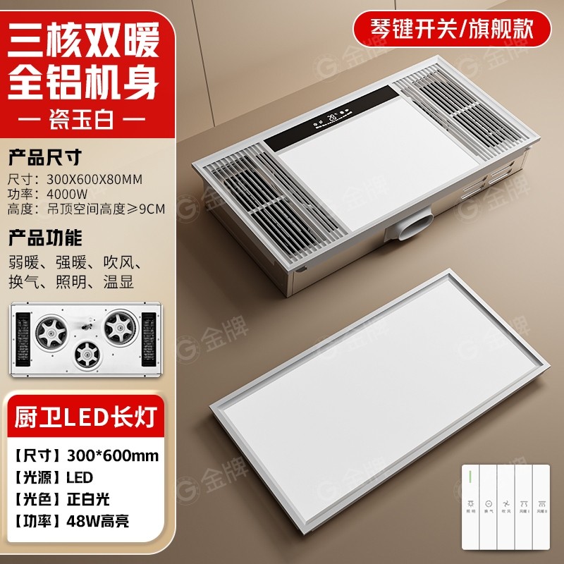 📚 金牌风暖浴霸集成吊顶浴室卫生间一体取暖石墨烯暖风机排气扇照明