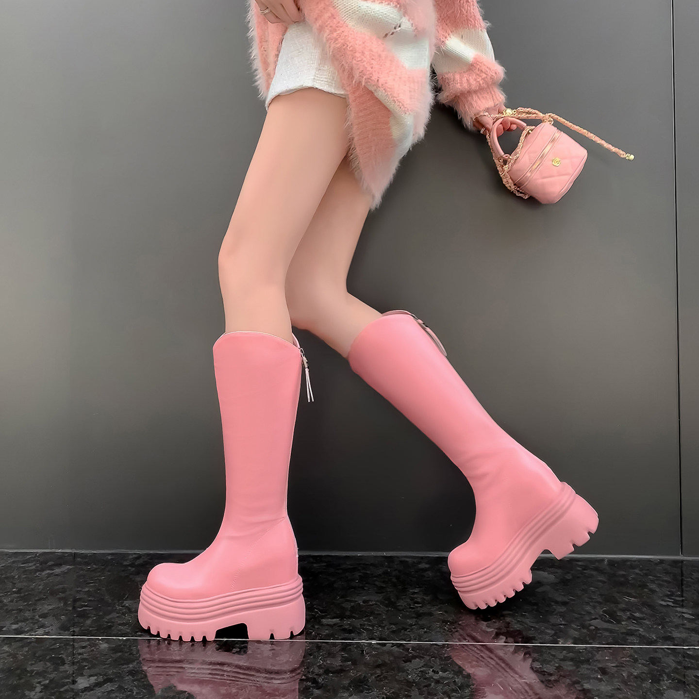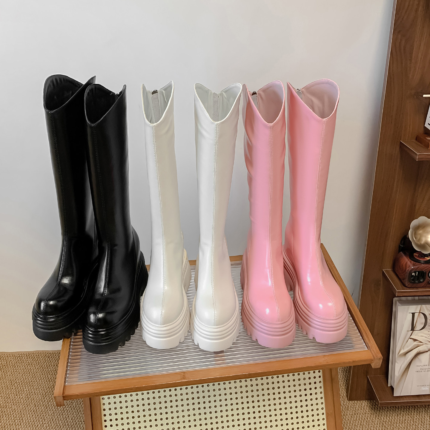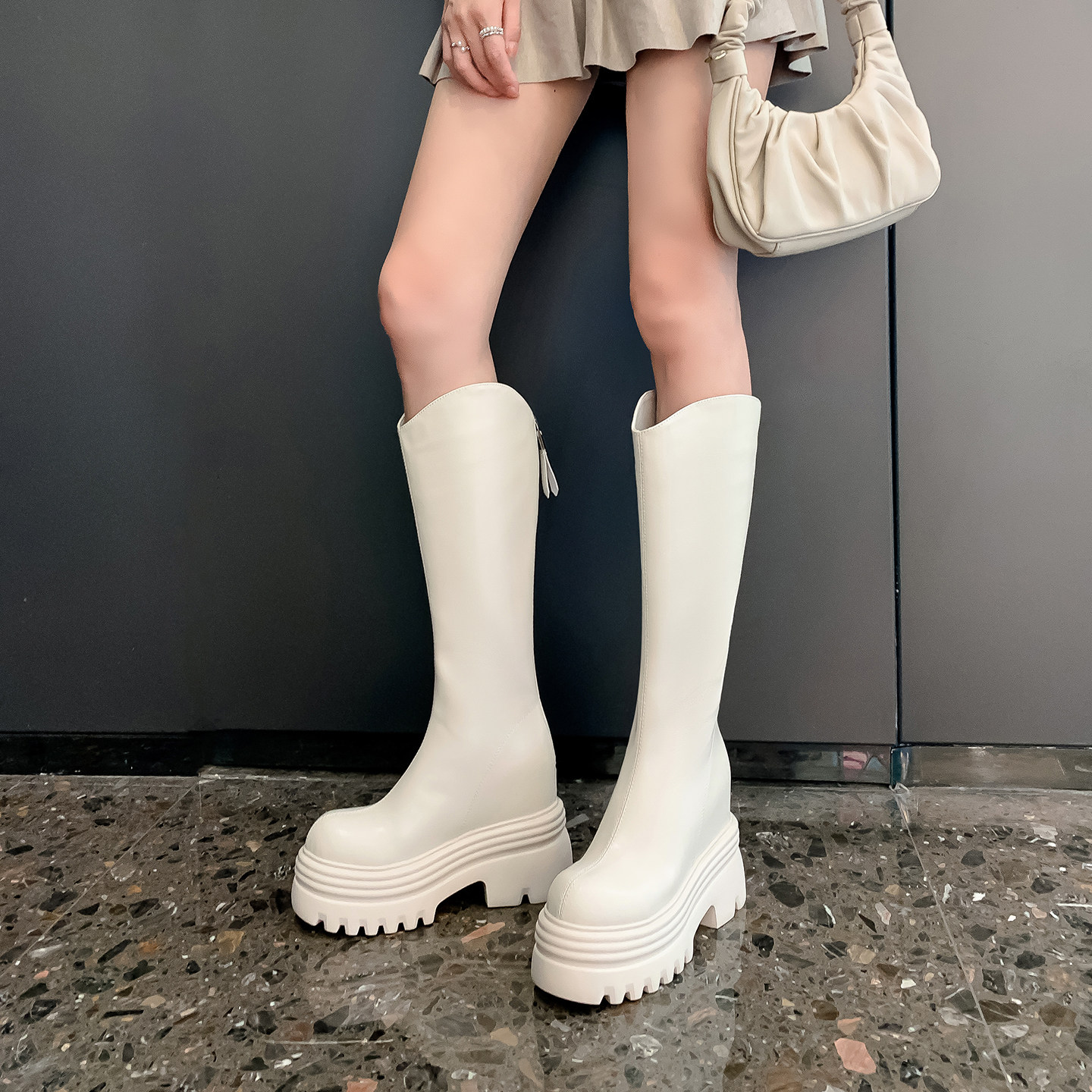 📚 小个子12cm内增高显瘦长筒时装靴马丁靴女鞋中筒高筒靴胖粗腿靴子