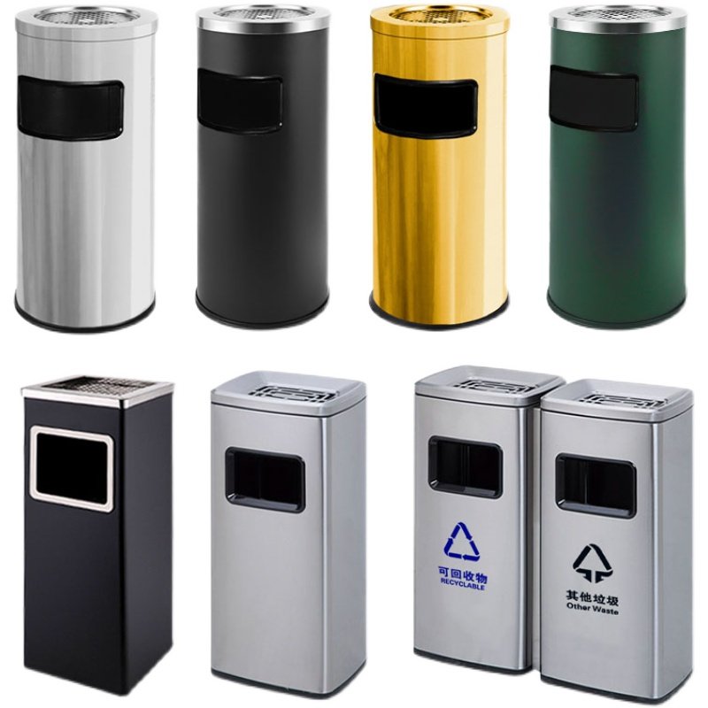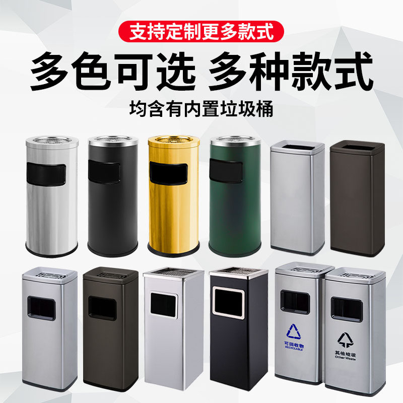 📚 不锈钢酒店大堂烟灰桶商用宾馆室内外圆方形环卫立式烟灰缸垃圾桶